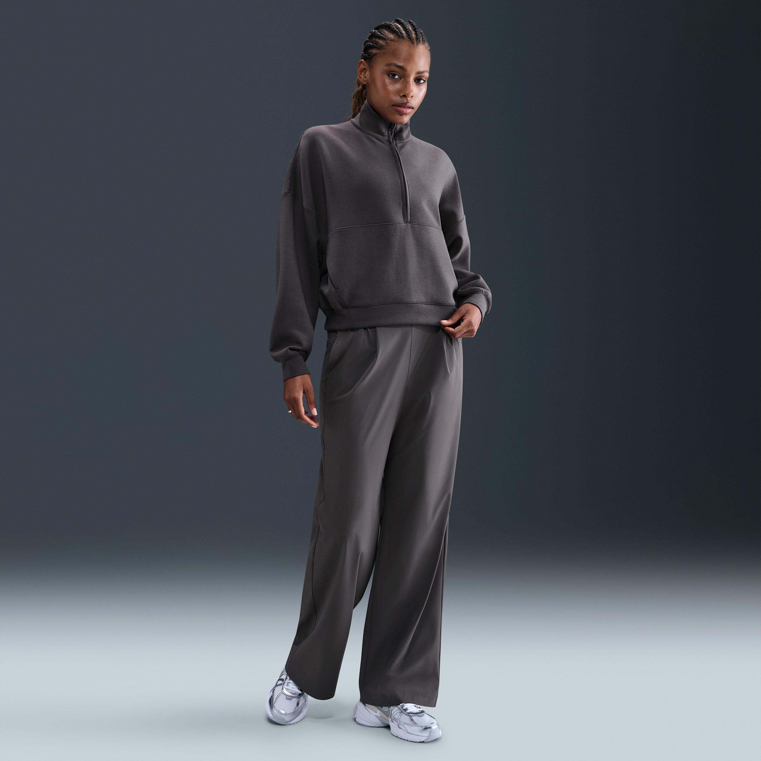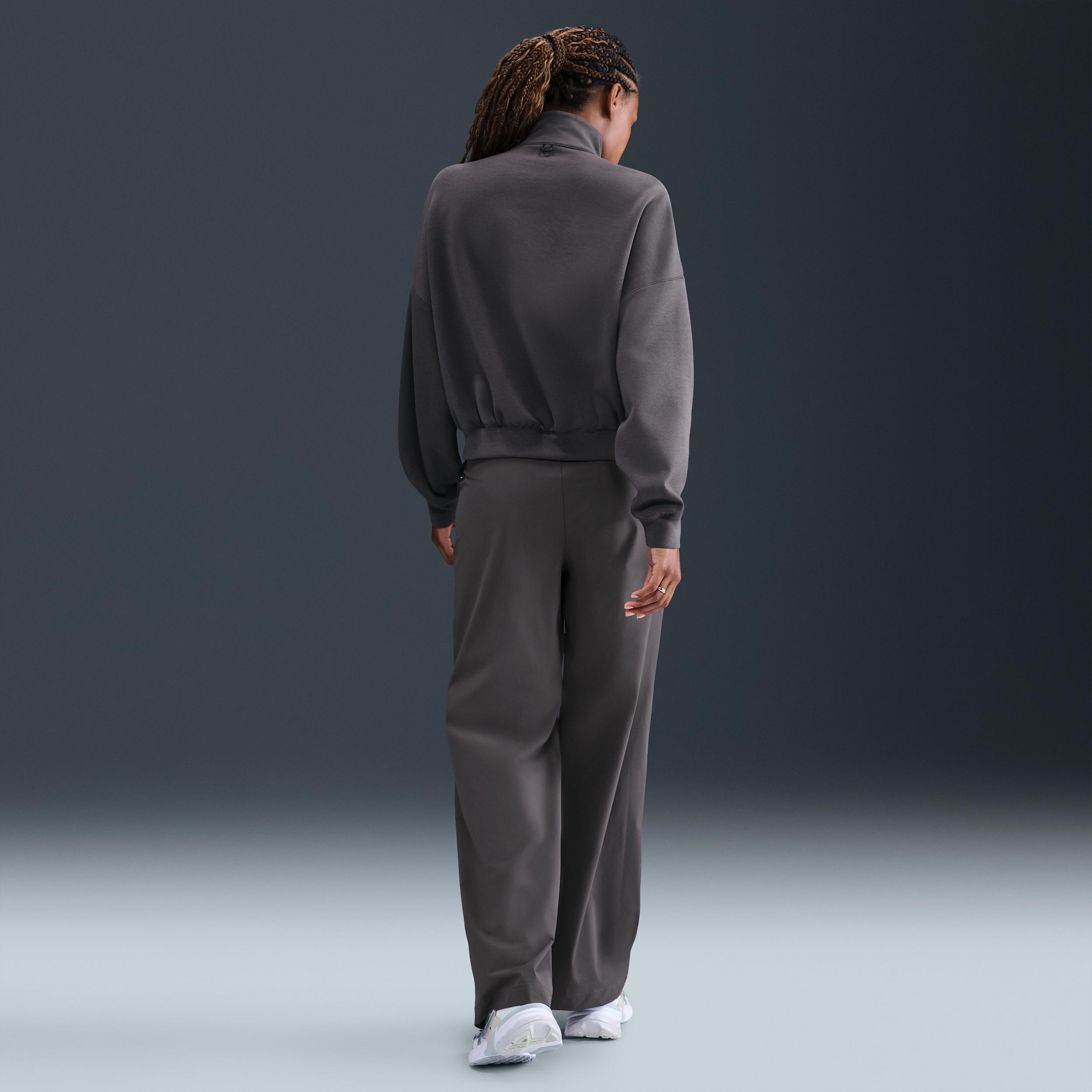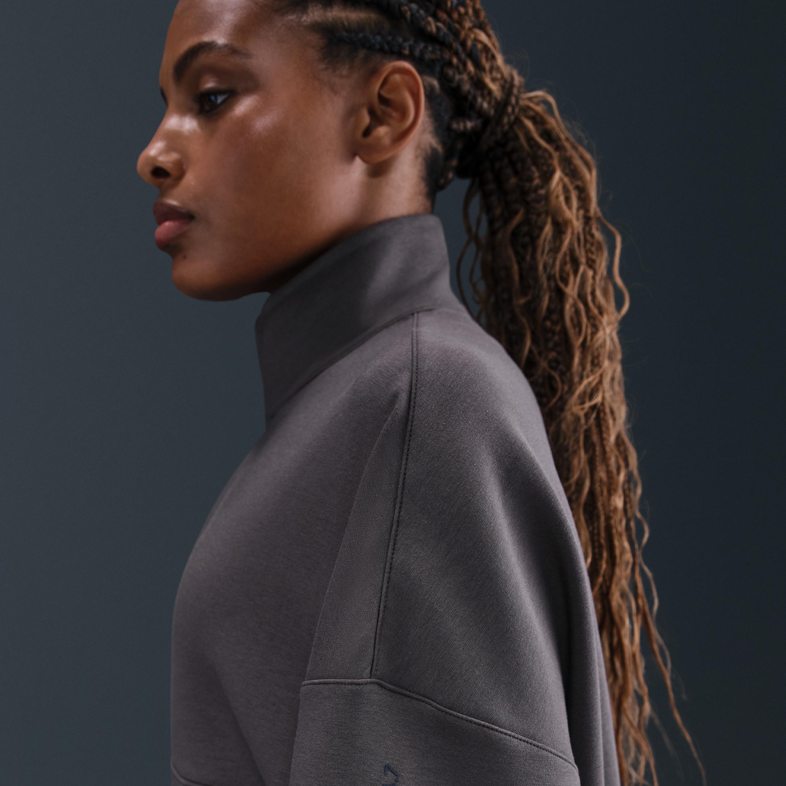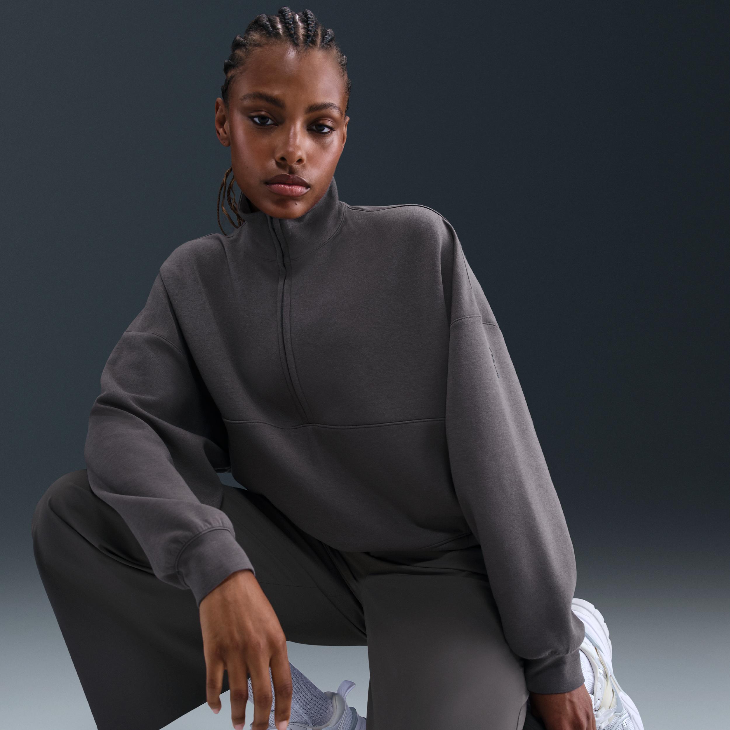 Extraordinarily soft and smooth, our ImpossiblySoft fabric feels made for all-day motion. Its a double-knit material that adds structure to this top while wicking sweatfor comfort that doesnt quit. Benefits:Nike Dri-FIT technology moves sweat away from your skin for quicker evaporation, helping you stay dry and comfortable. Open front pocket holds your essentials. [] Product Details:1/2-length zipper with thin molded pull. Signature locker loop at back of neck. Matte silicone branding on left sleeve. Body:51% polyester/25% modal/15% cotton/9% spandex. Pocket lining:100% cotton. Machine wash. Imported. Style: HQ8188; Color: Thunder Grey/Dark Shadow; Size: M; Gender: Female; Age Group: Adult | Nike 24.7 ImpossiblySoft Womens Dri-FIT Oversized 1/2-Zip Top in Grey, Size: Medium | HQ8188-036