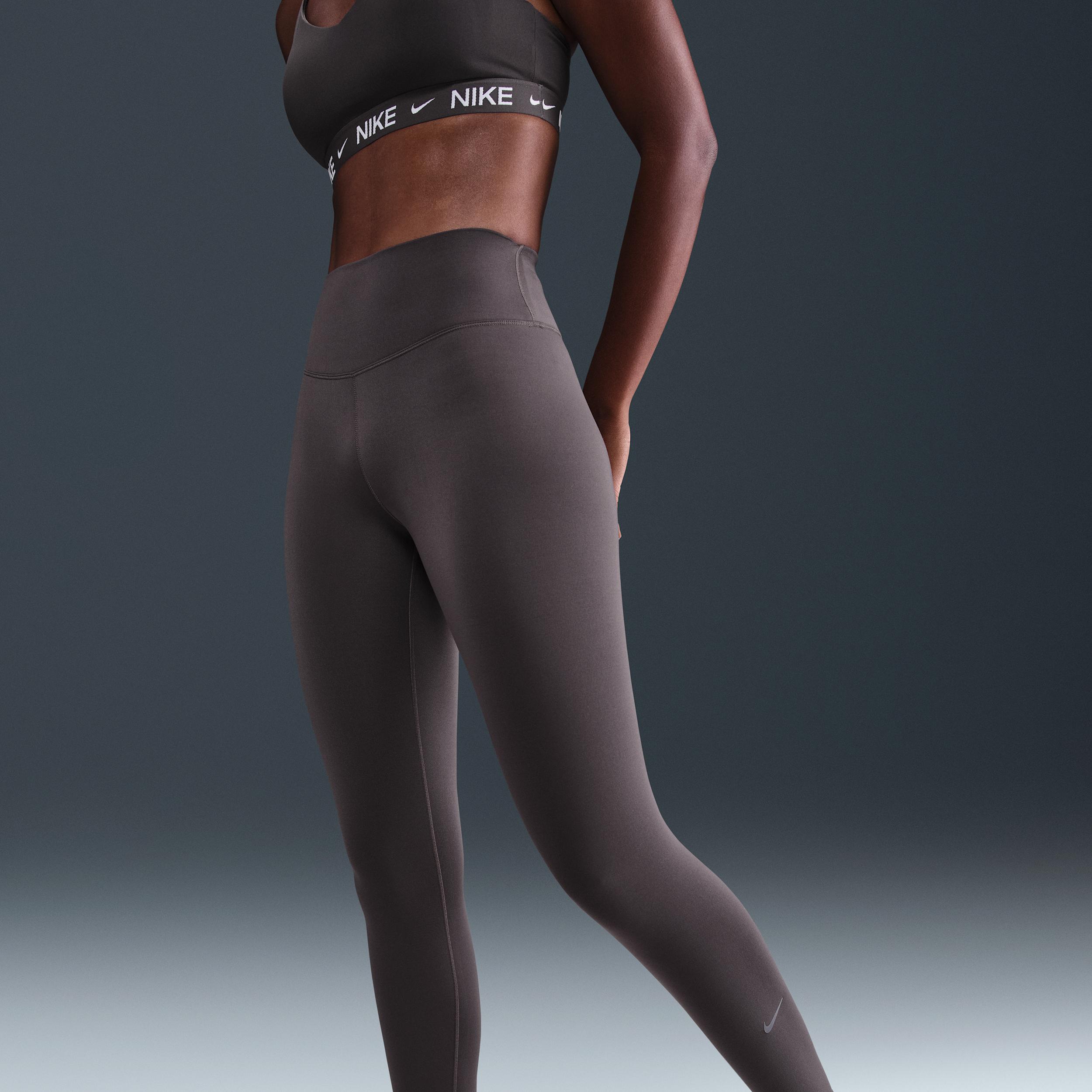 Bring on the cold. These heat-regulating leggings feel incredibly soft and cozy while high-stretch fabric keeps you ready to move. Benefits:Nike Therma-FIT technology helps manage your bodyâs natural heat to help keep you warm in cold-weather conditions. Back pocket fits most phones. Wide constructed waistband gives you a secure fit. [] Product Details:Reflective Swoosh logo on leg. Body/Waist lining:80% polyester/20% spandex. Gusset Lining:100% polyester. Machine wash. Imported. Not intended for use as Personal Protective Equipment (PPE). Style: HV2298; Color: Thunder Grey/White; Size: 2XS; Gender: Female; Age Group: Adult | Nike One Women's Therma-FIT High-Waisted Full-Length Leggings in Grey, Size: 2XS | HV2298-036