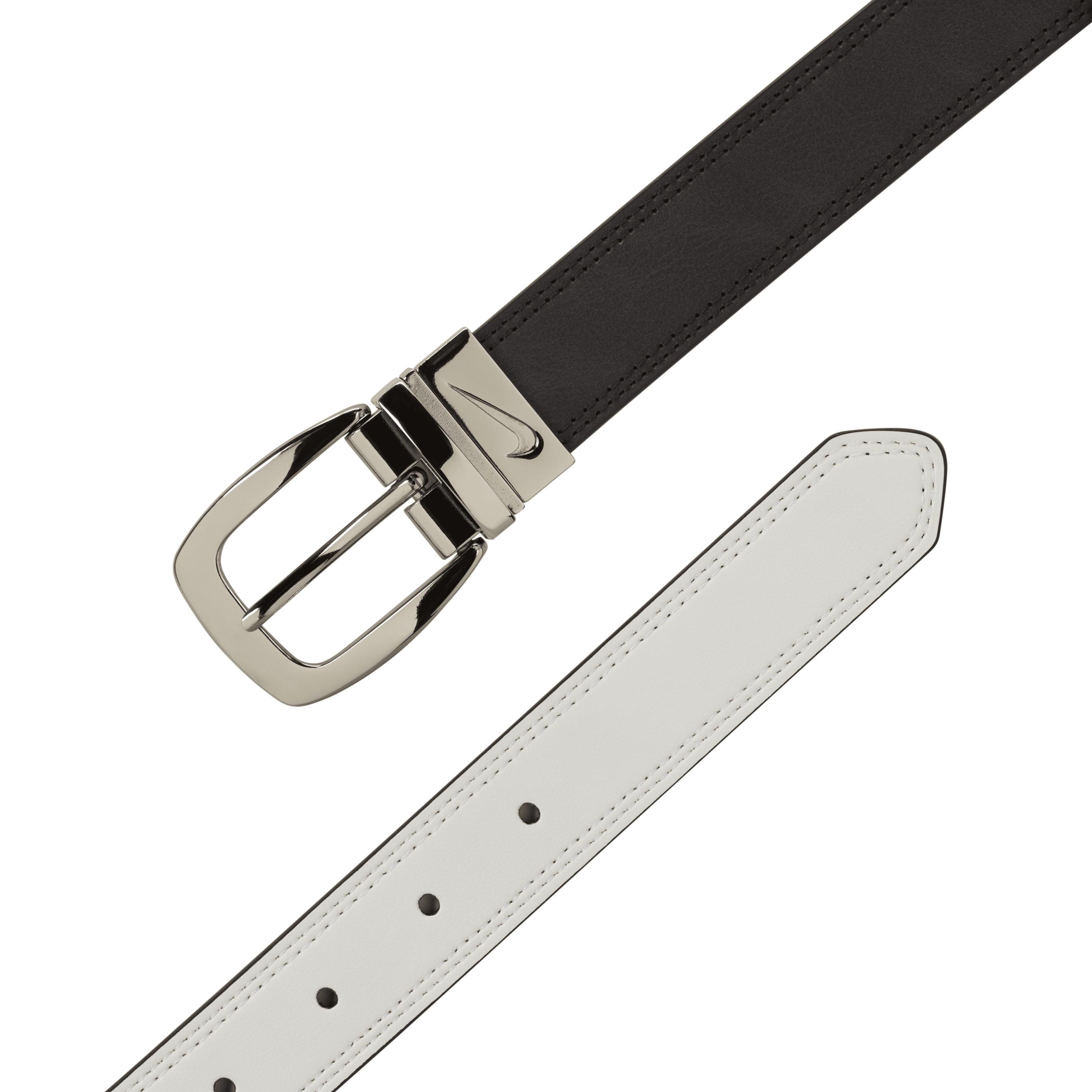 You can change your clubs, so why not your belt? With a reversible design, this golf belt offers 2 looks in 1 and helps provide the stay-put fit you need, round after round. Product Details:60% polyurethane/40% bonded leather strap. Width: 30mm. Spot Clean. Imported. Style: 13137A; Color: Black; Size: L; Gender: Female; Age Group: Adult | Nike Women's Reversible 2-Row Stitch Golf Belt in Black, Size: Large | 13137A-004