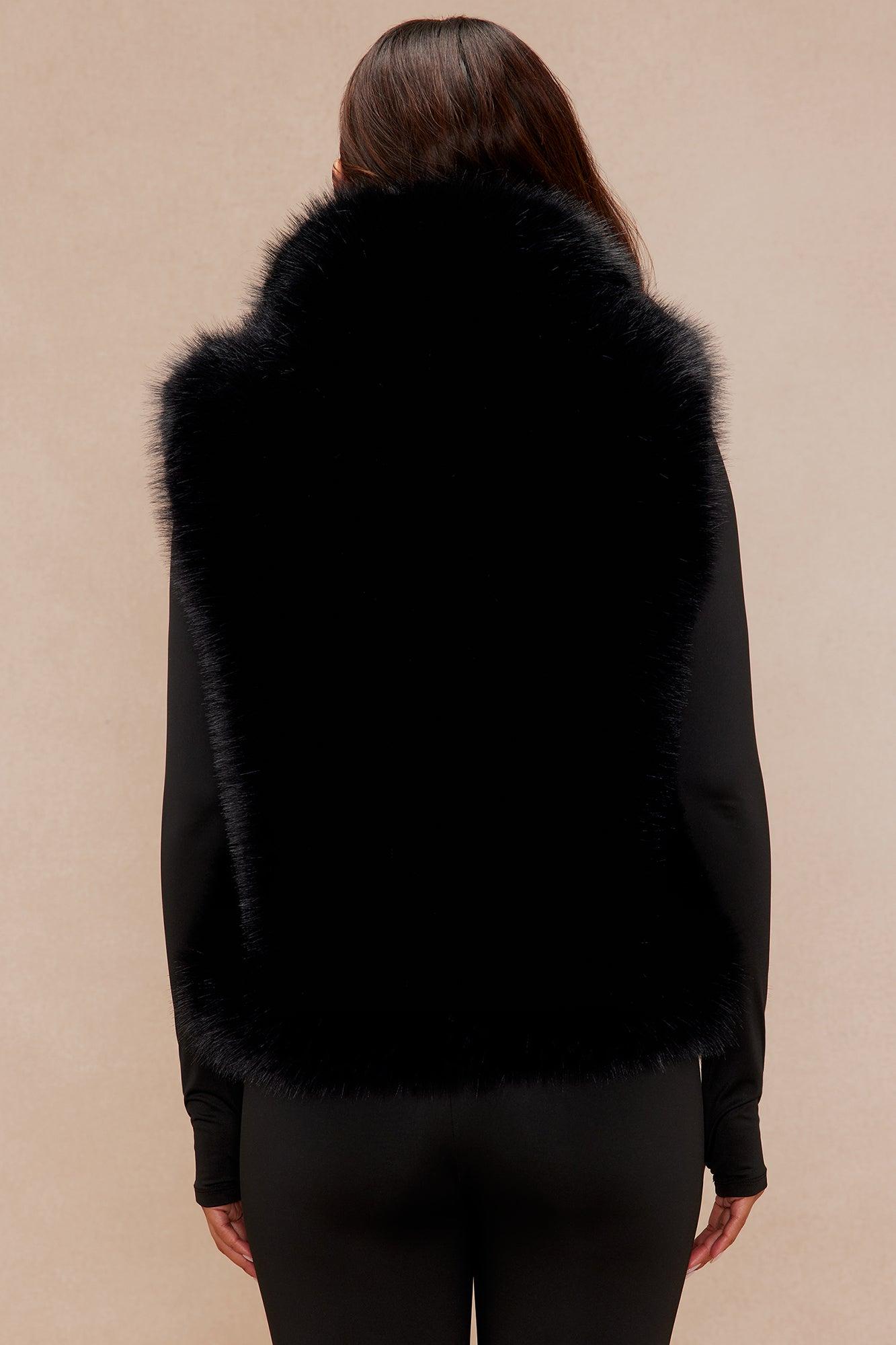Available In Black And Off White. Faux Fur Vest Sleeveless Collared Front Hook And Eye Closures Lined Non Stretch Self: 100% Polyester Lining: 97% Polyester 3% Spandex Imported California Proposition 65WARNING: Cancer and Reproductive Harm - www.P65Warnings.ca.gov.