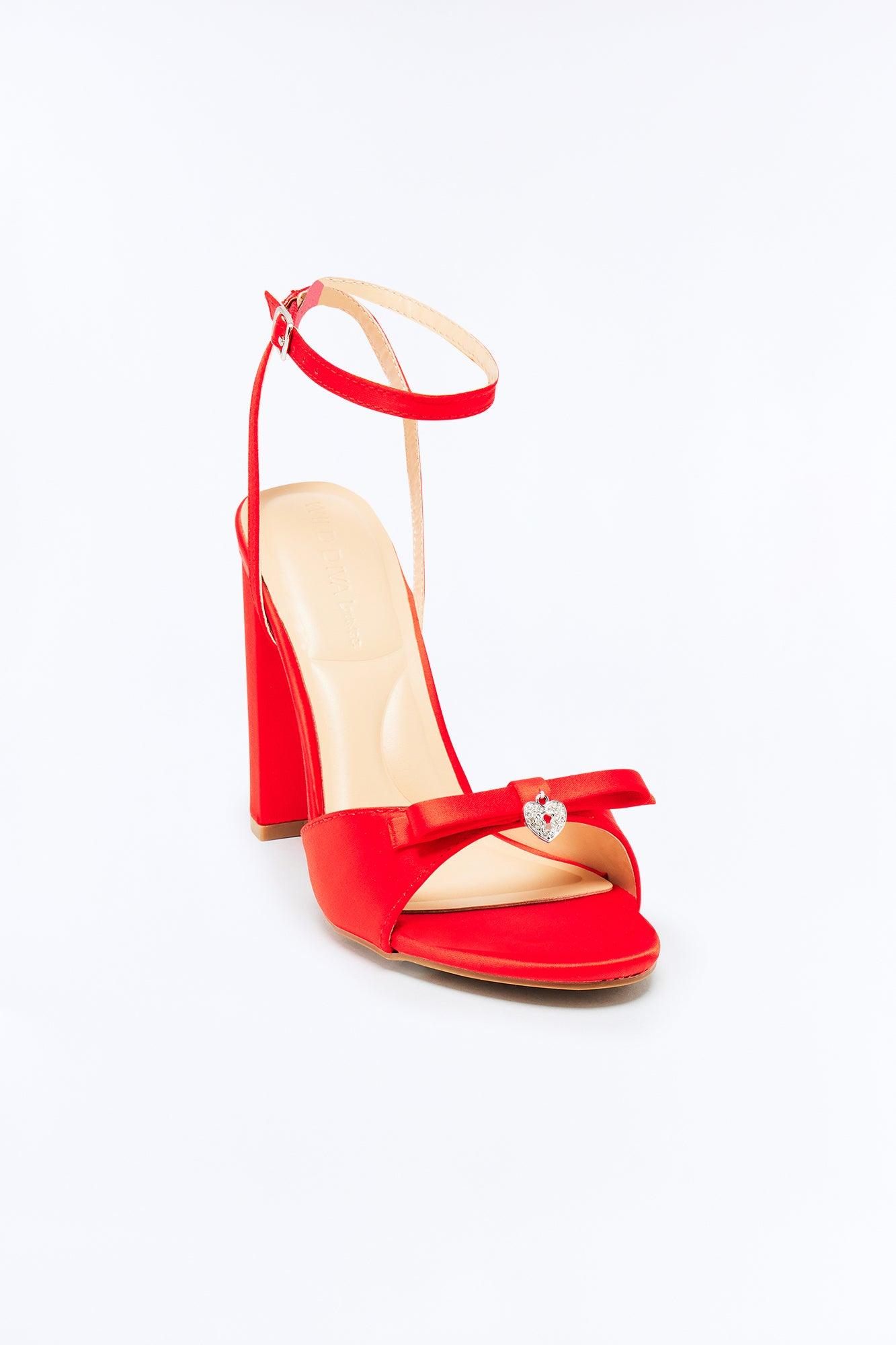 Nikki Satin Bow Heels - Red Female
