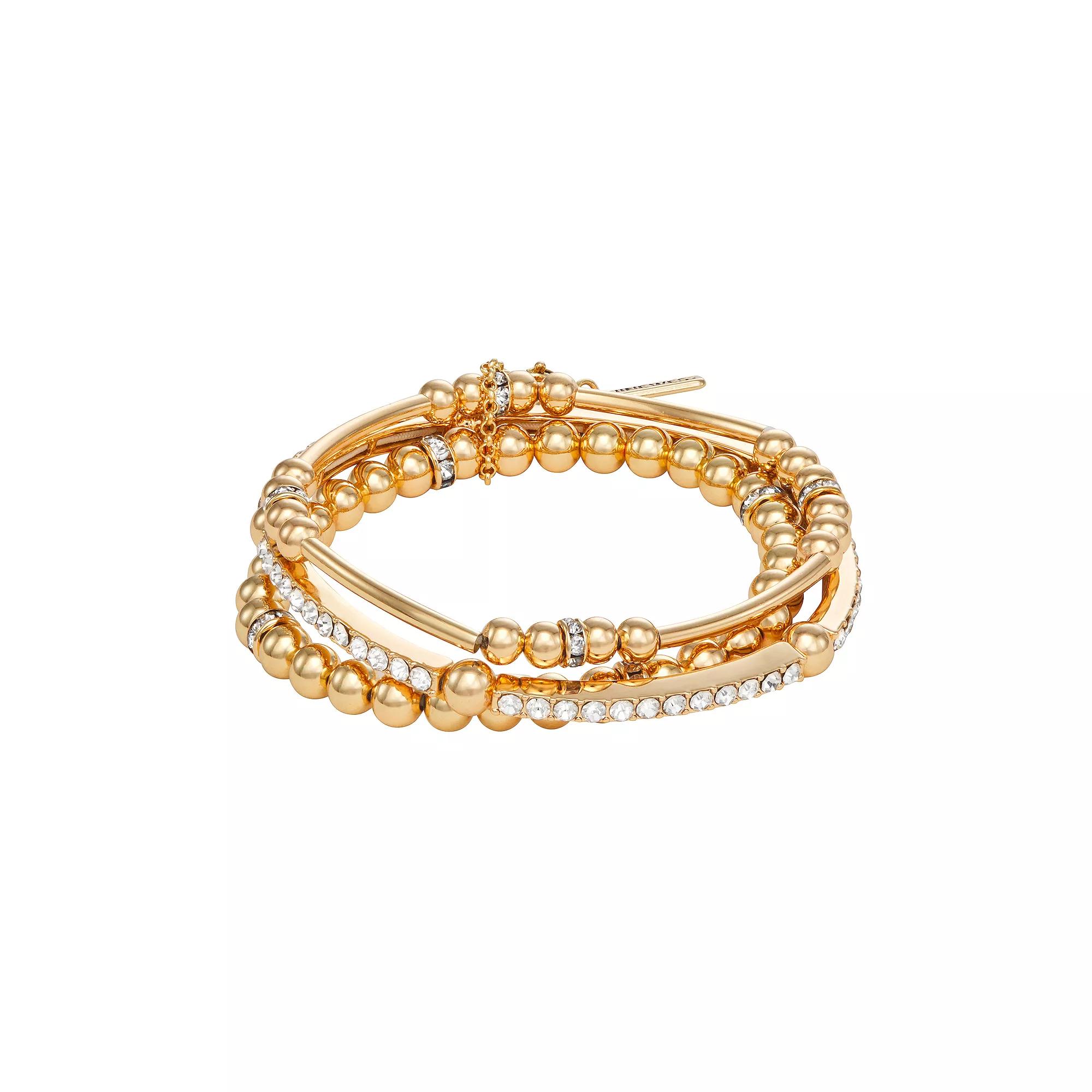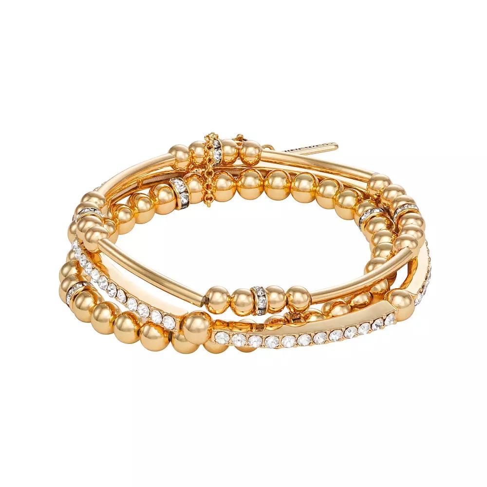 Give your jewelry box a sparkling refresh with this set of three crystal-embellished gold tone stretch bracelets from Nine West. Click on this JEWELRY & WATCHES GUIDE to learn about fit, styles, materials and more! Give your jewelry box a sparkling refresh with this set of three crystal-embellished gold tone stretch bracelets from Nine West. Click on this JEWELRY & WATCHES GUIDE to learn about fit, styles, materials and more! FEATURES Includes 3 bracelets Length: 7.25 in. Nickel safe Metal: alloy Plating: gold tone Finish: polished Material: crystal Not appropriate for children 14 years old and younger. Size: One Size. Gender: female. Age Group: adult.