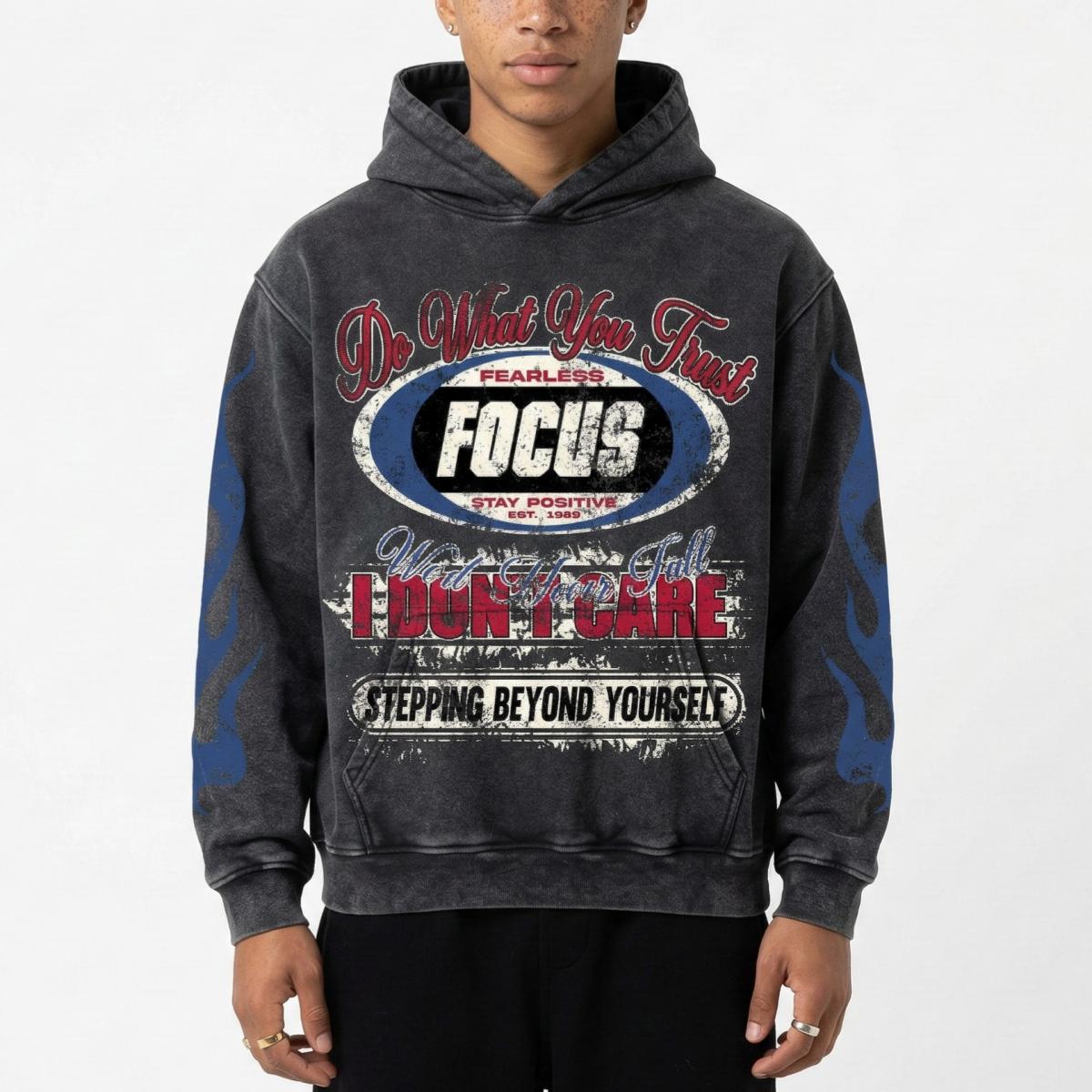 No. 28 Racing Elements Vintage Prints Graphic Acid Wash Hoodie
