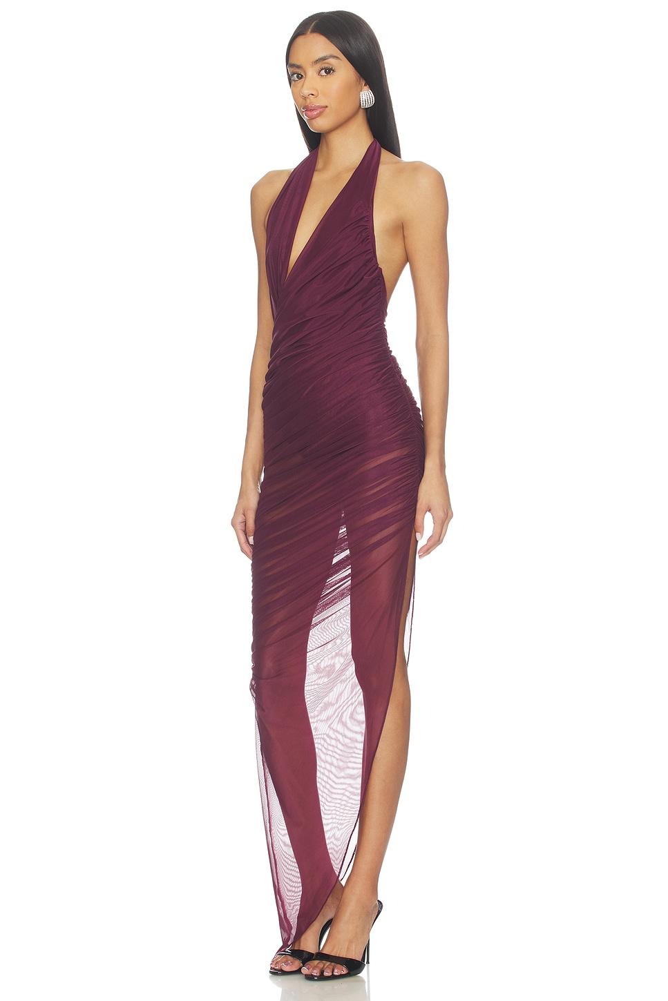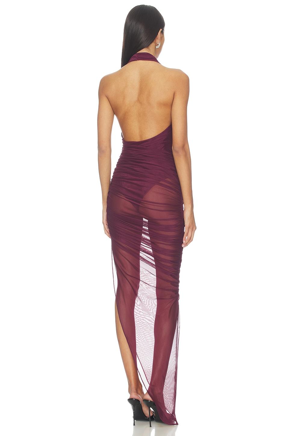 82% polyester, 18% elastane. Made in China. Hand wash cold. Partially lined. Hidden side zip closure. Lightweight mesh fabric. Snap button gusset closure. Neckline to shortest hem measures approx 26" and to longest hem approx 45" in length. Revolve Style No. NBDR-WD3465. Manufacturer Style No. NBD10076 H25.
