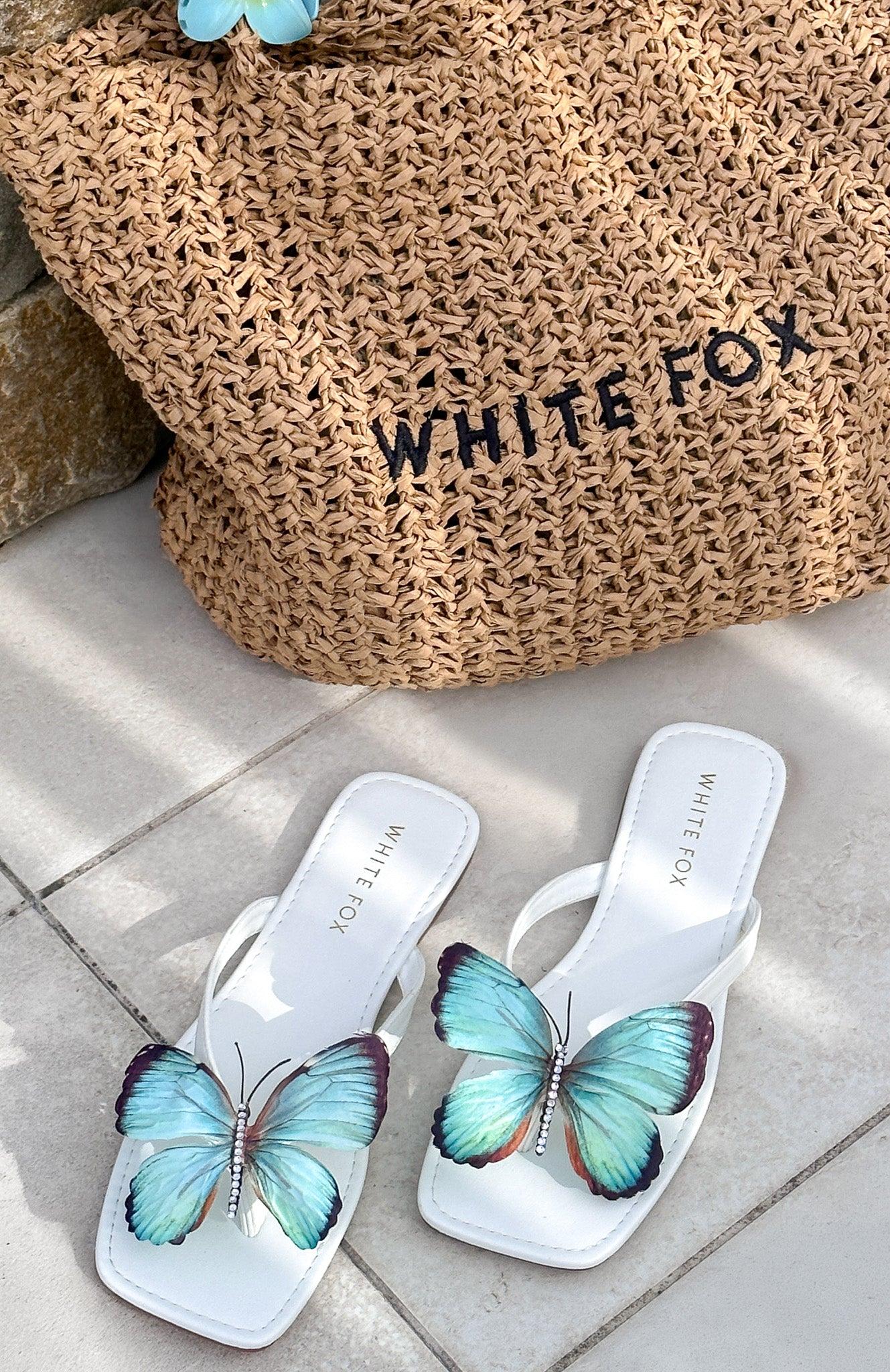 The IT girl shoes of the season have just arrived - welcome the Noelle Sandals White/Aqua! Features square toe, 2 toe strap design with floral detailing, flat sole and rounded back- we are in love! Heel Height: 0.8cm Upper PU Sole Synthetic Rubber
