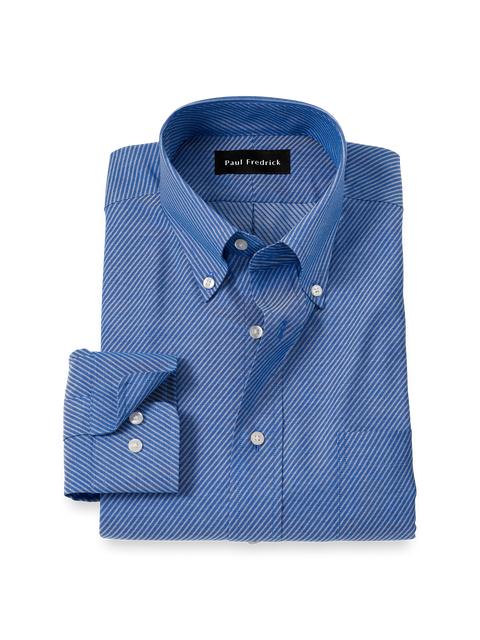 Non-Iron Cotton Diagonal Stripe Dress Shirt - Blue