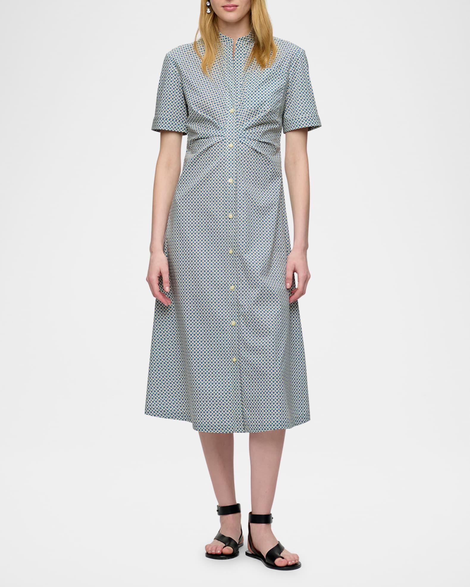 Noor Pleated Geometric-Print Midi Shirtdress