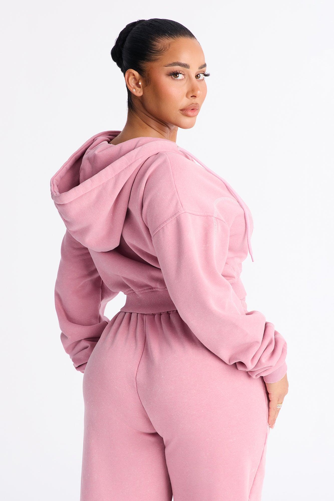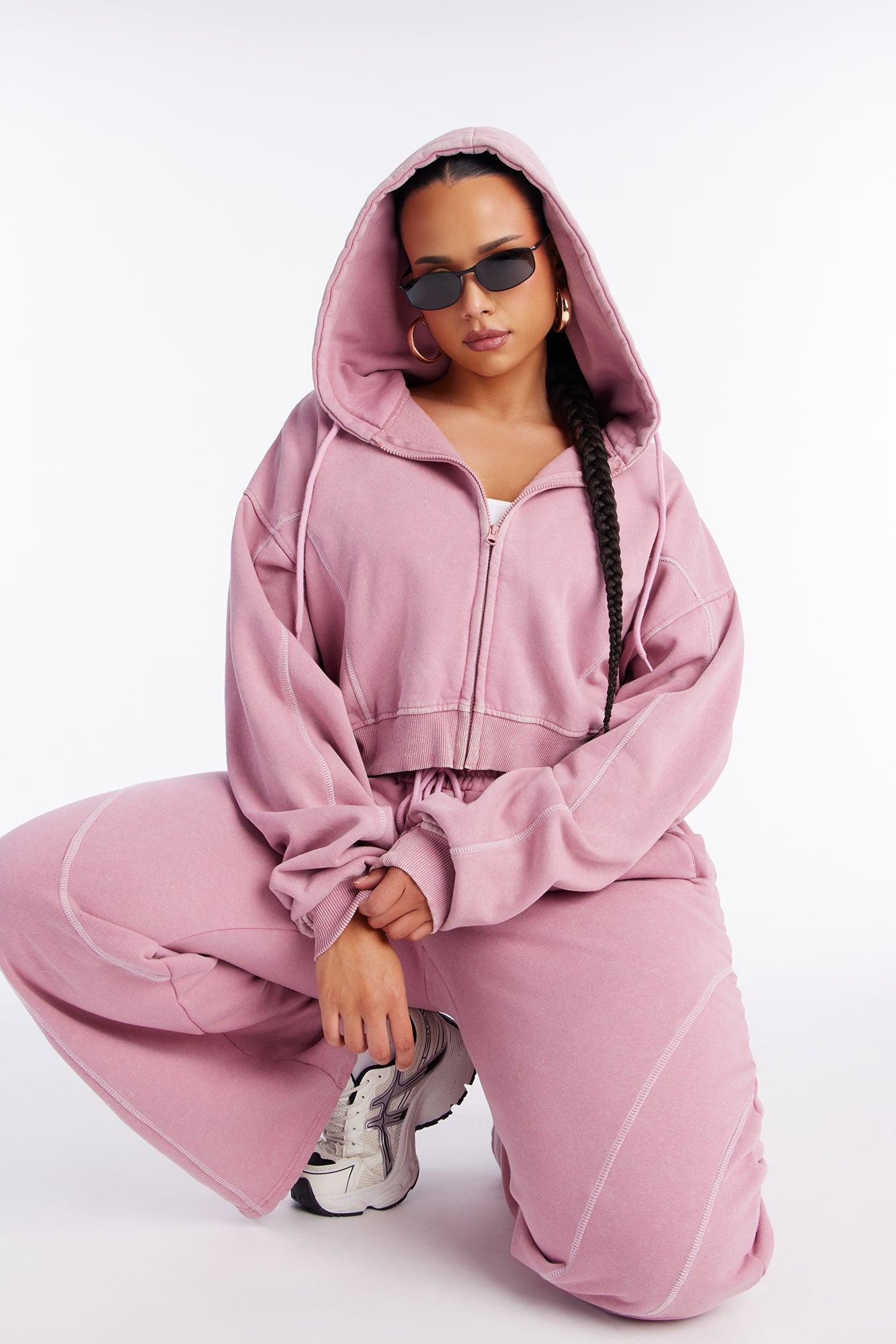 Available In Black, Blue, Brown, Mauve And Sage. Lounge Hoodie Long Sleeve Washed Contrast Trim Drawstring Fleece Pair With "Norah Washed Lounge Pant" Disclaimer: Due To The Specialized Wash, Each Garment Is Unique. 60% Cotton 40% Polyester Imported