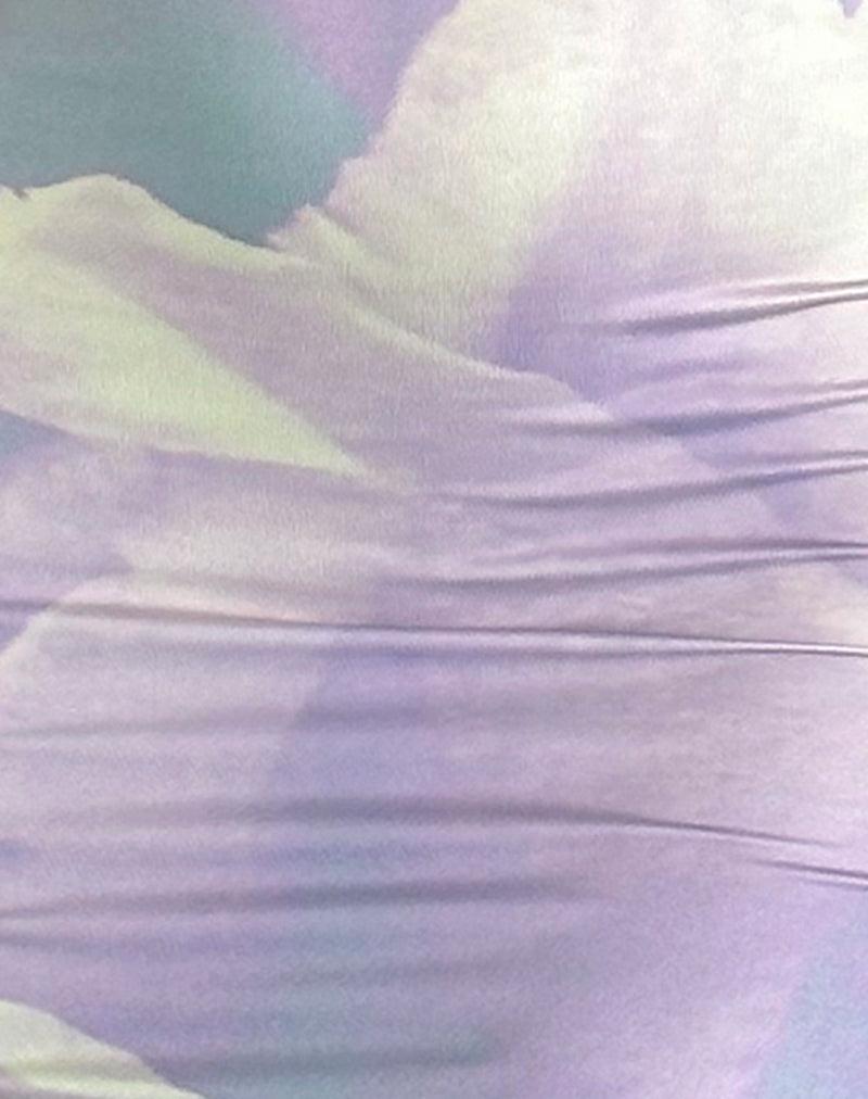 Norila dress in orchid petal lilac printed slinky jersey fabric. Features a maxi length fit, thin straps and bodycon fit. MODEL WEARS SIZE:EXTRA SMALL - MODEL HEIGHT:5'7