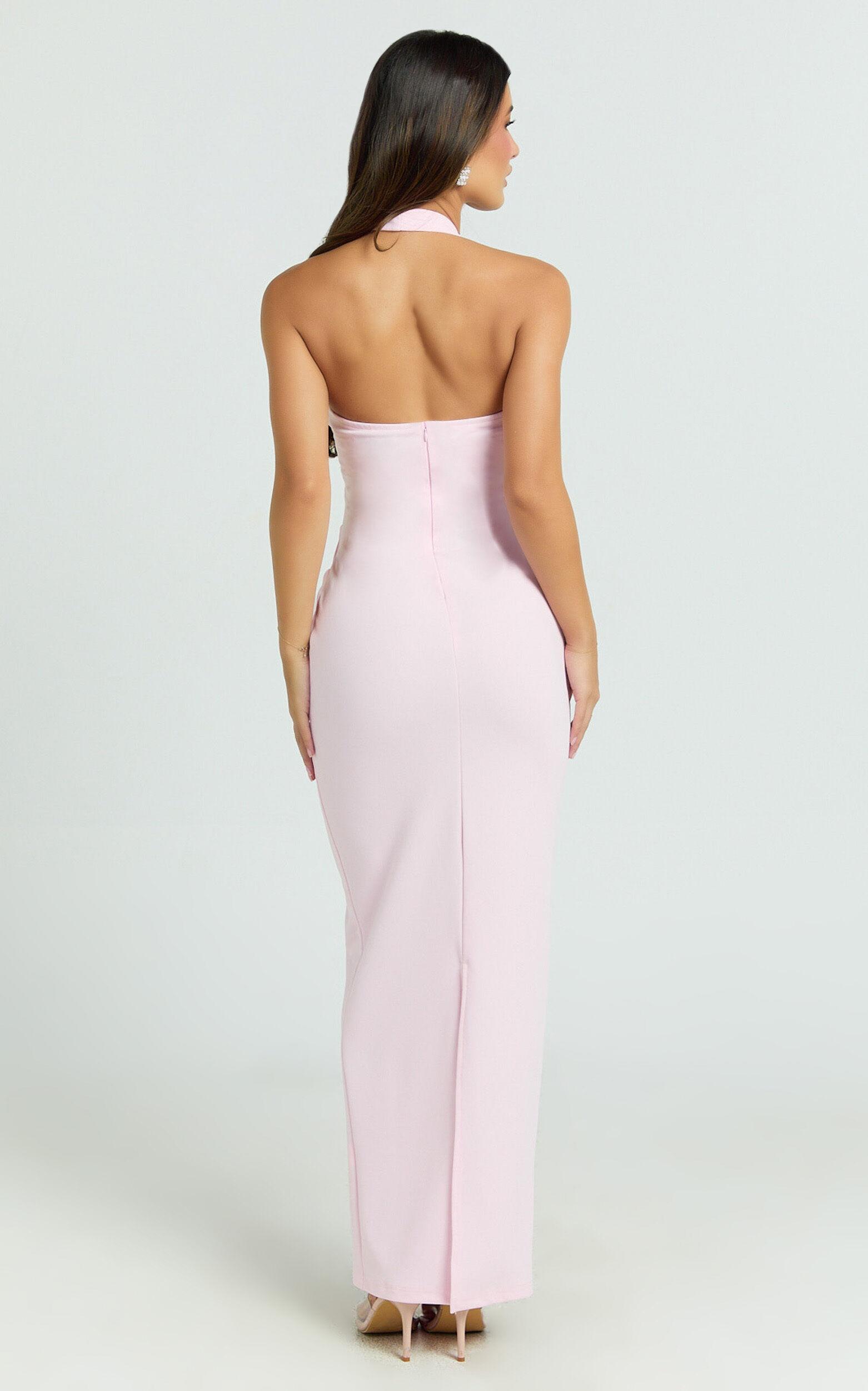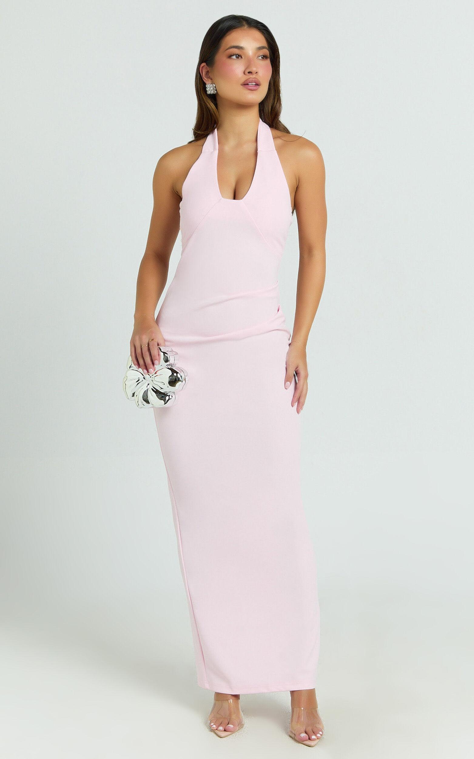 Norma Maxi Dress - Halter Neck Sleeveless Dress in Soft Pink