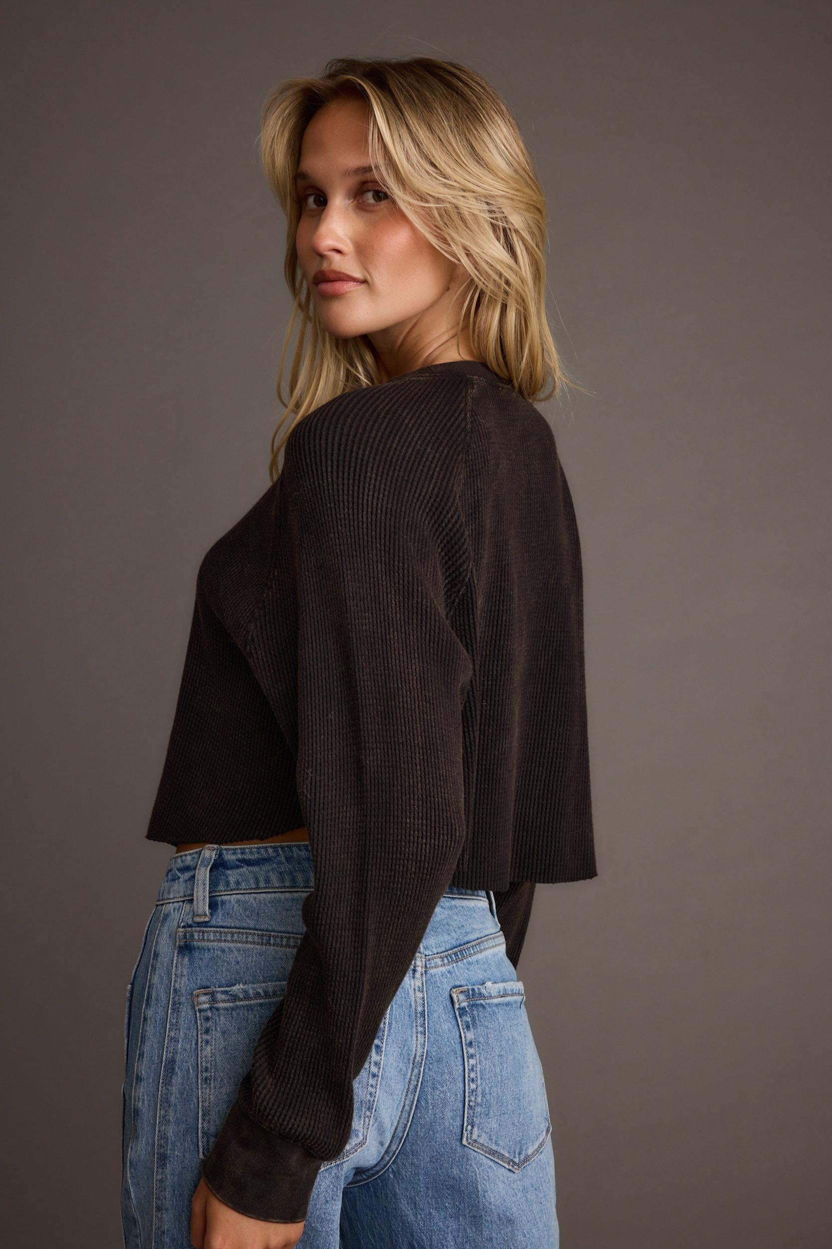 Not your boyfriend is back, now in black to add your closet essentials. SO not your boyfriend's tee, this Black Long Sleeve Waffle Knit Henley is made for you. Made from a cozy waffle knit material, this effortless long sleeve is our fall go-to top you can pair jeans and dress up with your favorite accessories.