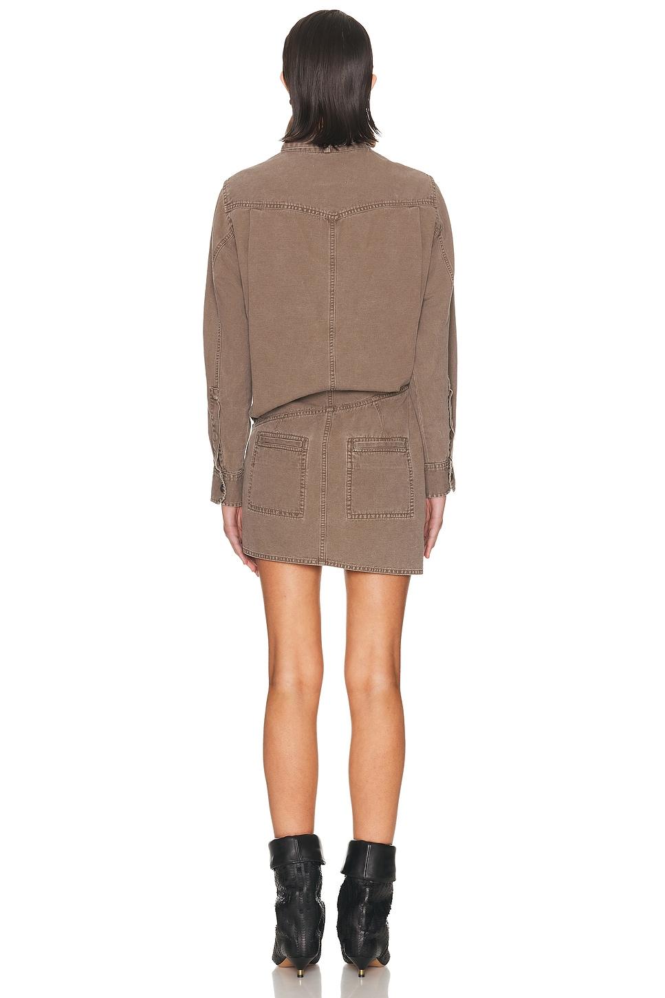 dressSelf: 80% cotton, 20% linenLining: 100% cotton / Machine wash / Unlined / Front partial snap button closure / Breast snap button pockets / Back slip pockets / Intentional fading / Midweight denim fabric / Made in Tunisia / Our Style No. ETOI-WD239 / Manufacturer Style No. 26PRO0959FA-D1G04E / Model is wearing size 36.