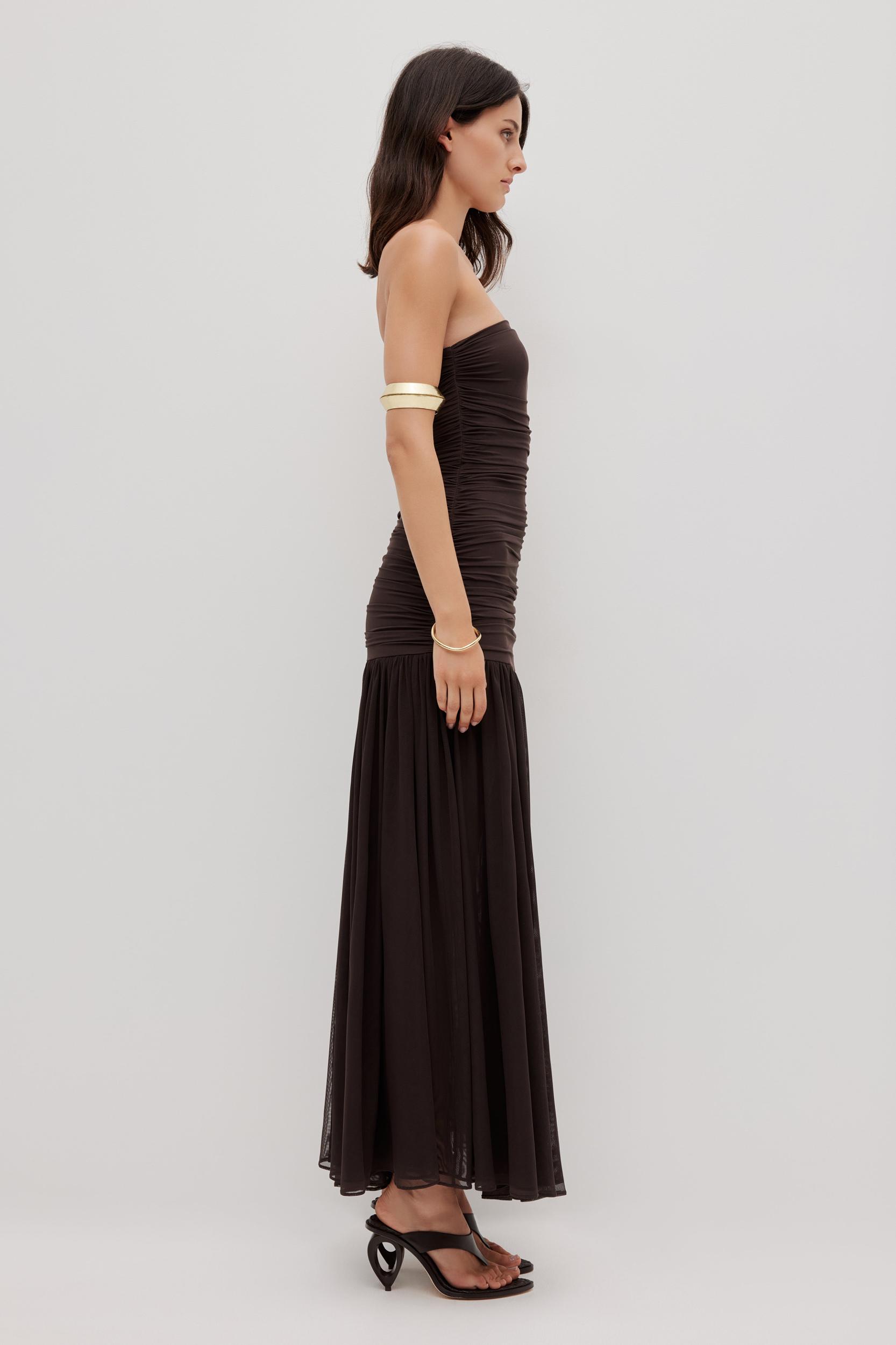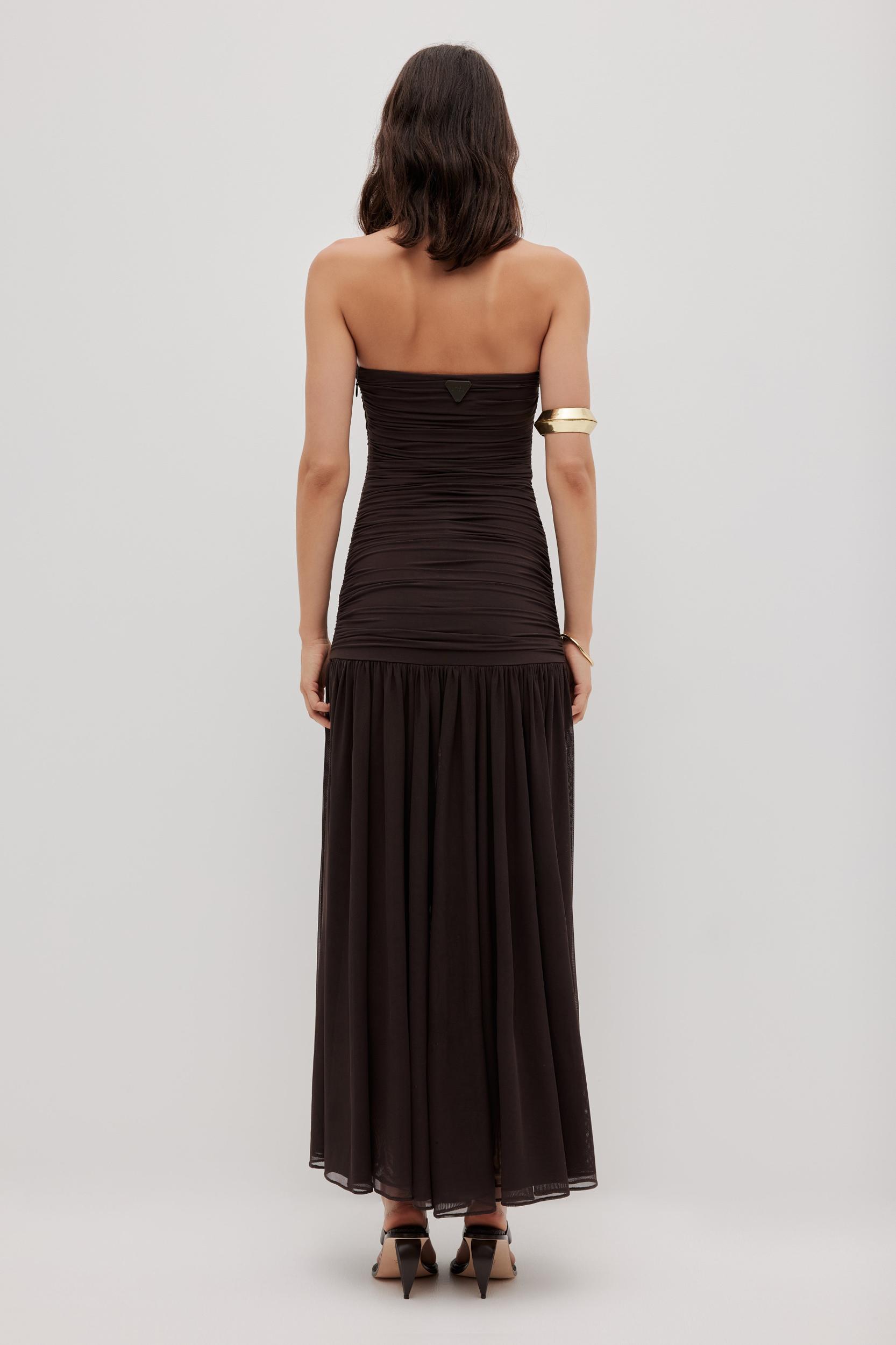 Novae Strapless Maxi Dress-DEEP CHOCOLATE / XXS