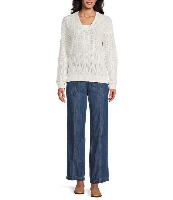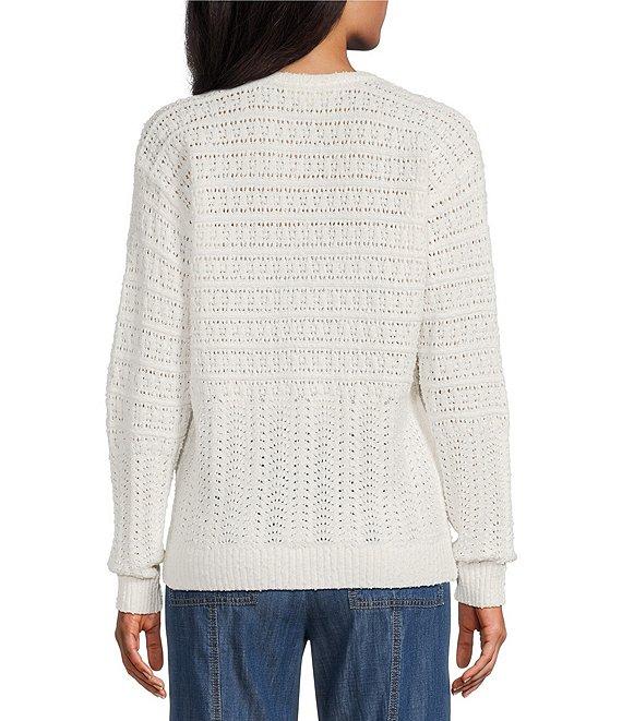 Nurture Long Sleeve V-Neck Open Stitch Pullover Top