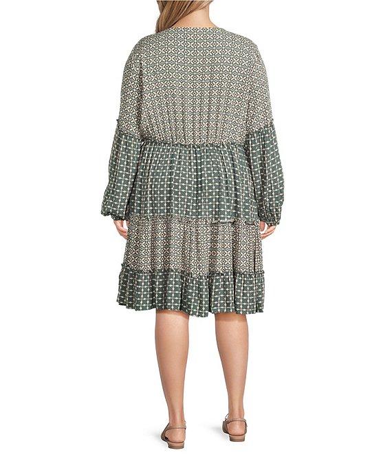 Nurture Plus Print Mix Long Sleeve Short Dress