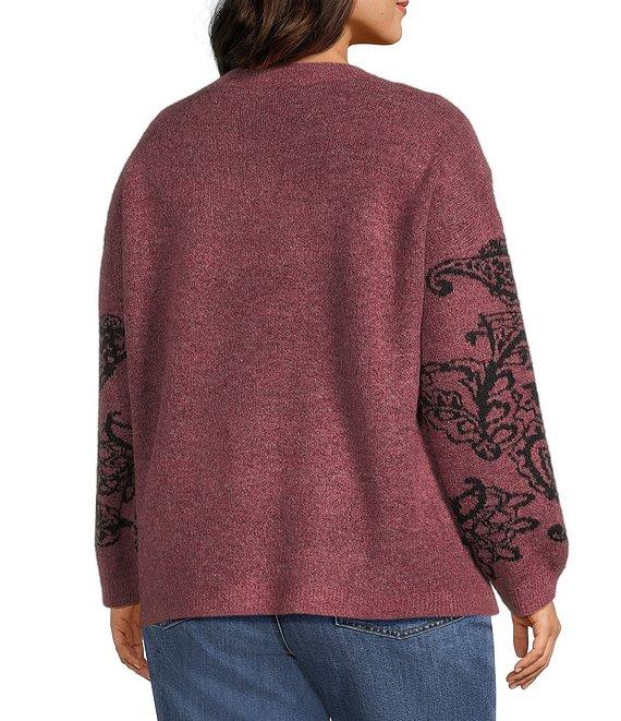 Nurture Plus Size Long Sleeve Crew Neck Maroon Paisley Sweater