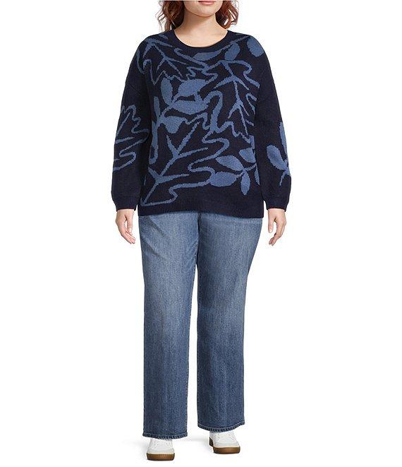 Nurture Plus Size Long Sleeve Crew Neck Navy Leaves Sweater
