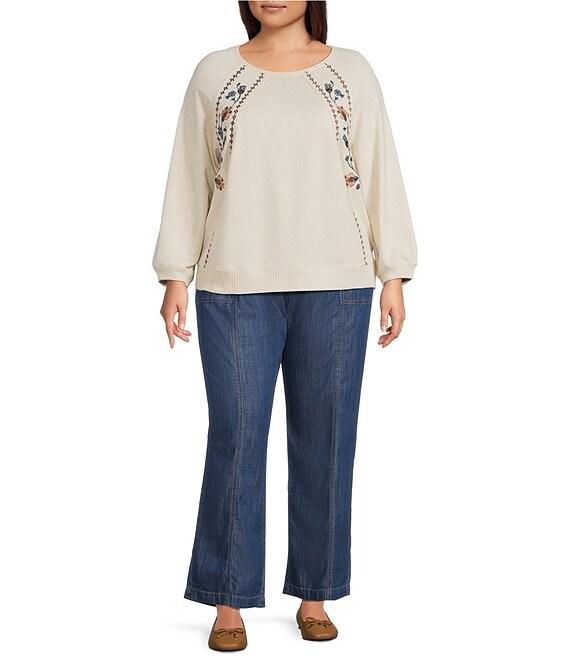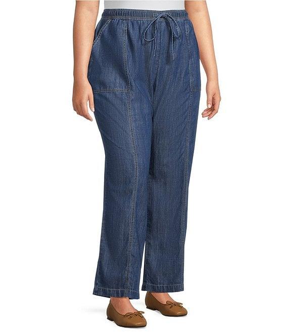 Nurture Plus Size Pull-On Tie Front Relaxed Straight Leg Pants