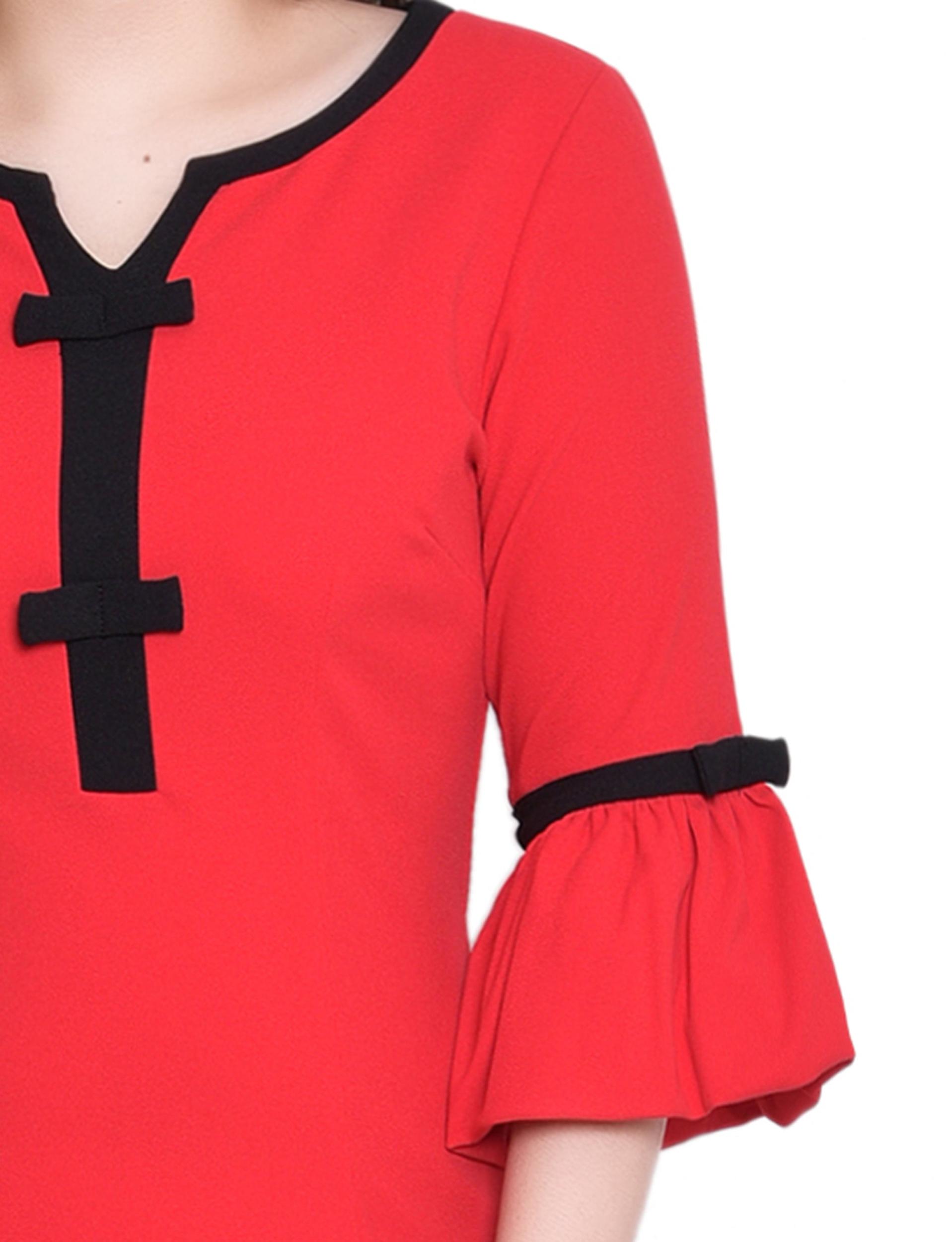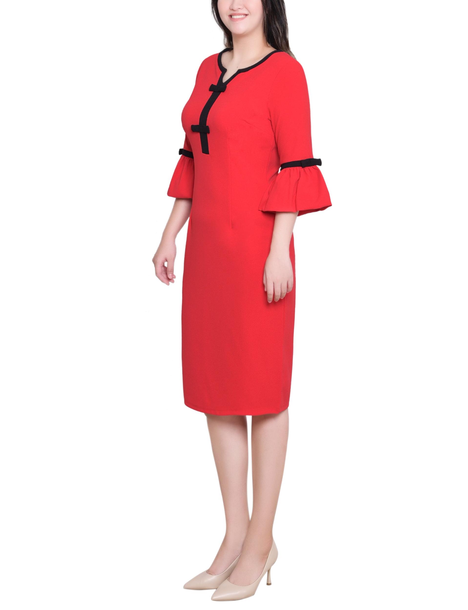 NY Collection Missy 3/4 Sleeve Contrast Detail Dress - Fire Red Black