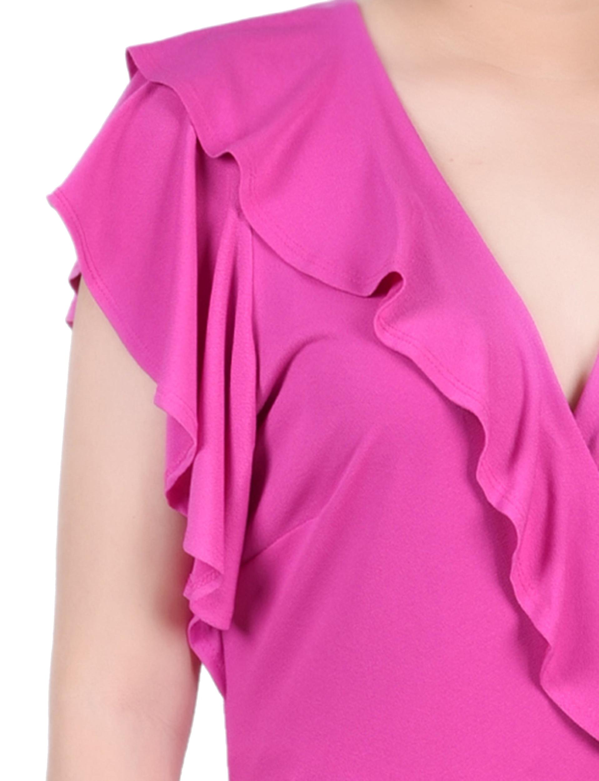 NY Collection Missy Short flutter Sleeve Ruffle Neck Dress - Magenta