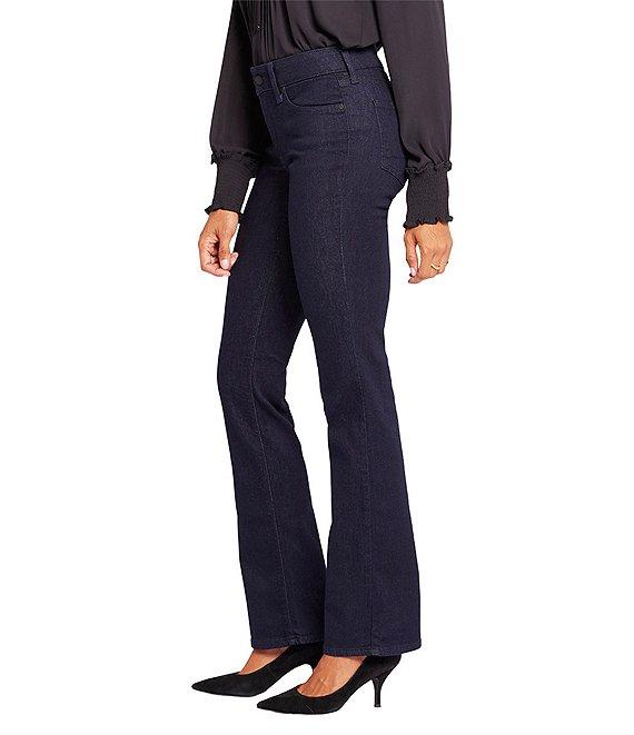 From NYDJ Petite, these jeans feature: Stretch denim fabrication Bootcut silhouette Belt loops 5-pocket style Lift Tuck® Technology Button and zip fly closure Approx. 30" inseam; 17" leg opening; 9.25" front rise; 14.75" back rise Cotton/elastomultiester/lycra® elastane Machine wash/line dry Imported. Barbara Bootcut Jeans Not too long, not too short NYDJ's Barbara Bootcut Jeans in Petite fit just right. Our exclusive Lift Tuck Technology uses a proprietary slimming panel with a patented criss-cross design to give this comfortable, go-to style its superior shaping powers. The traditional bootcut fit gives you a flattering legs-for-days look and makes these jeans an effortless closet staple.