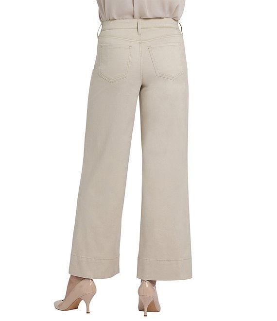 From NYDJ, these jeans feature: Stretch denim fabrication Wide leg silhouette High-rise waistline 5-pocket styling Lift Tuck® Technology Ankle length Deep trouser-style hemline Center front button and zip fly closure Approx. 29" inseam; 9.75" front rise; 22" leg opening; 3" hemline Cotton/polyester/elastane Machine wash/line dry Imported. The Teresa Wide Leg Ankle Jeans with 3 Inch Hems by NYDJ have a lighthearted, on-trend silhouette that's fun to pair with heels and ankle boots. A wide leg opening adds drama, while a deep trouser hem gives this style a polished finish. Our Lift Tuck® Technology is made to help you keep your shape with a proprietary slimming panel with a patented criss-cross design that smooths and sculpts.
