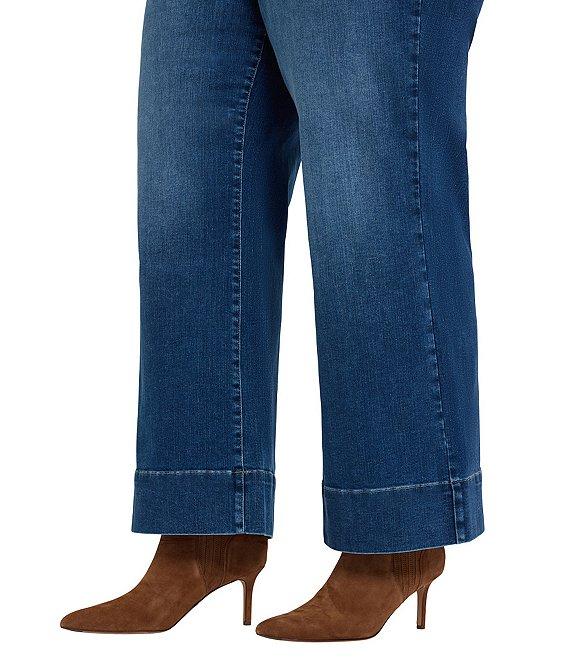 From NYDJ Plus, these jeans feature: Stretch denim fabrication Wide leg silhouette 5-pocket styling Lift Tuck® Technology Ankle length Deep trouser-style hemline Center front button and zip fly closure Approx. 29" inseam; 12" front rise; 19.5" leg opening Cotton/elastomultiester/lycra elastane Machine wash/line dry Imported. The Teresa Wide Leg Ankle Jeans in Plus Size with 3 Inch Hems by NYDJ have a lighthearted, on-trend silhouette that's fun to pair with heels and ankle boots. A wide leg opening adds drama, while a deep trouser hem gives this style a polished finish. Our Lift Tuck Technology is made to help you keep your shape with a proprietary slimming panel with a patented criss-cross design that smooths and sculpts. Features five-pocket styling and a zip fly with button closure.