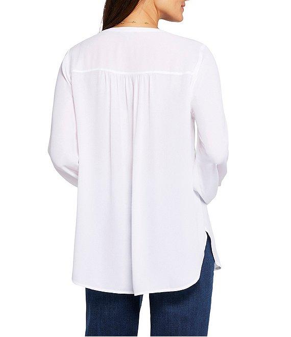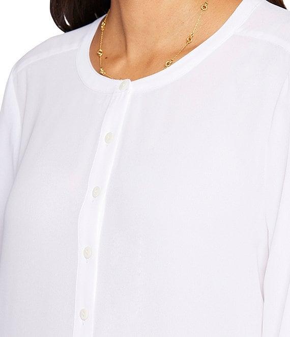 NYDJ Simone Round Neck Button Front Long Gathered Cuff Sleeve Blouse