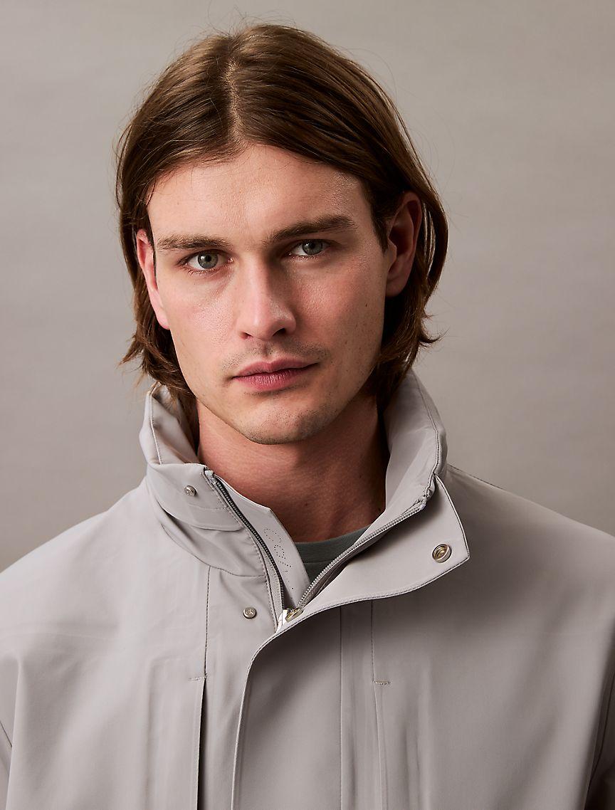 Made from durable nylon blended with 4-way stretch, this jacket is water and wind resistant. Designed with a removable hood for convertible styling. Detailed with multiple zip pockets and a vent around the mid-section for exceptional ventilation.
