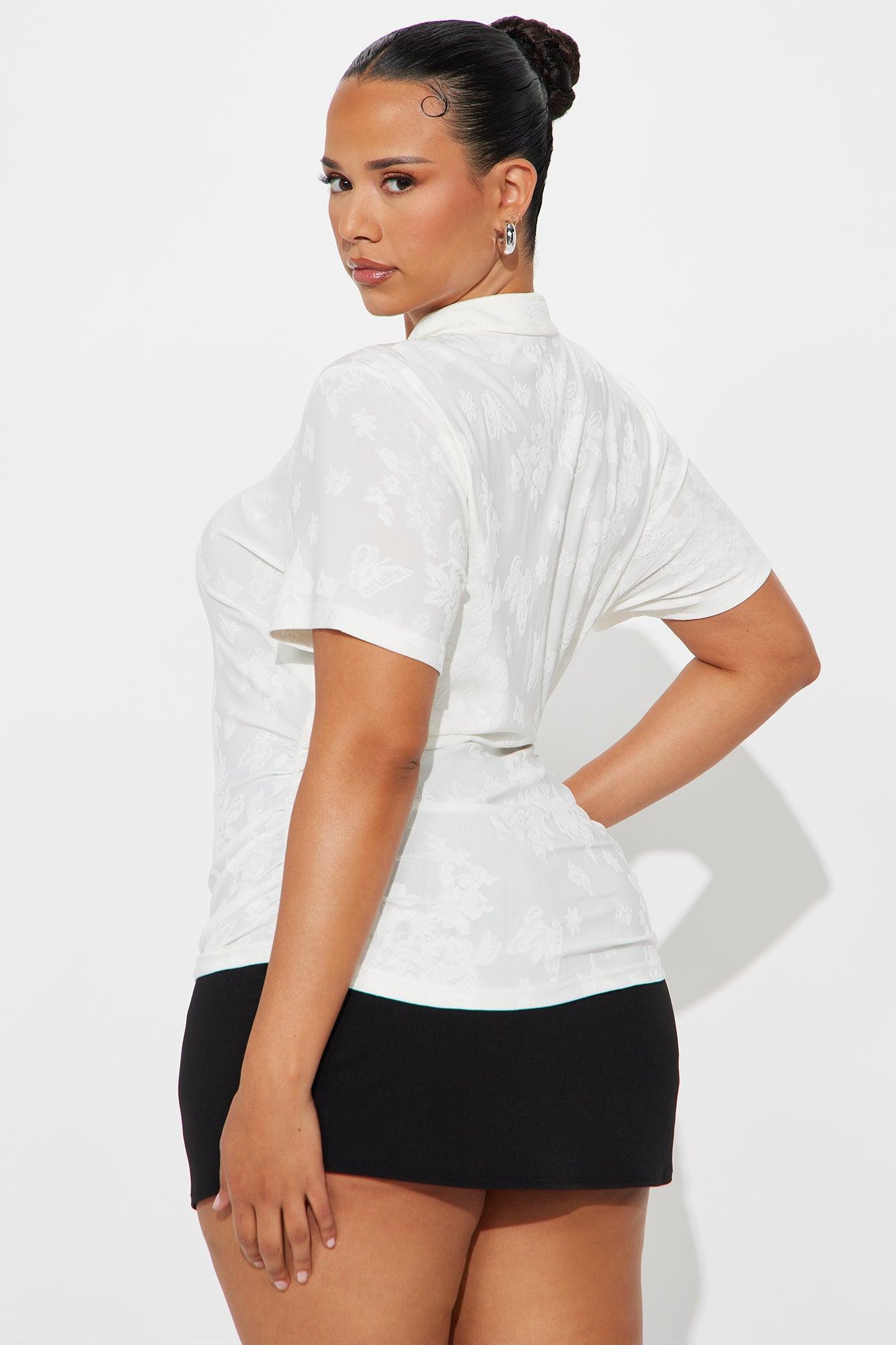 Nyxara Short Sleeve High Neck Top - Ivory Female