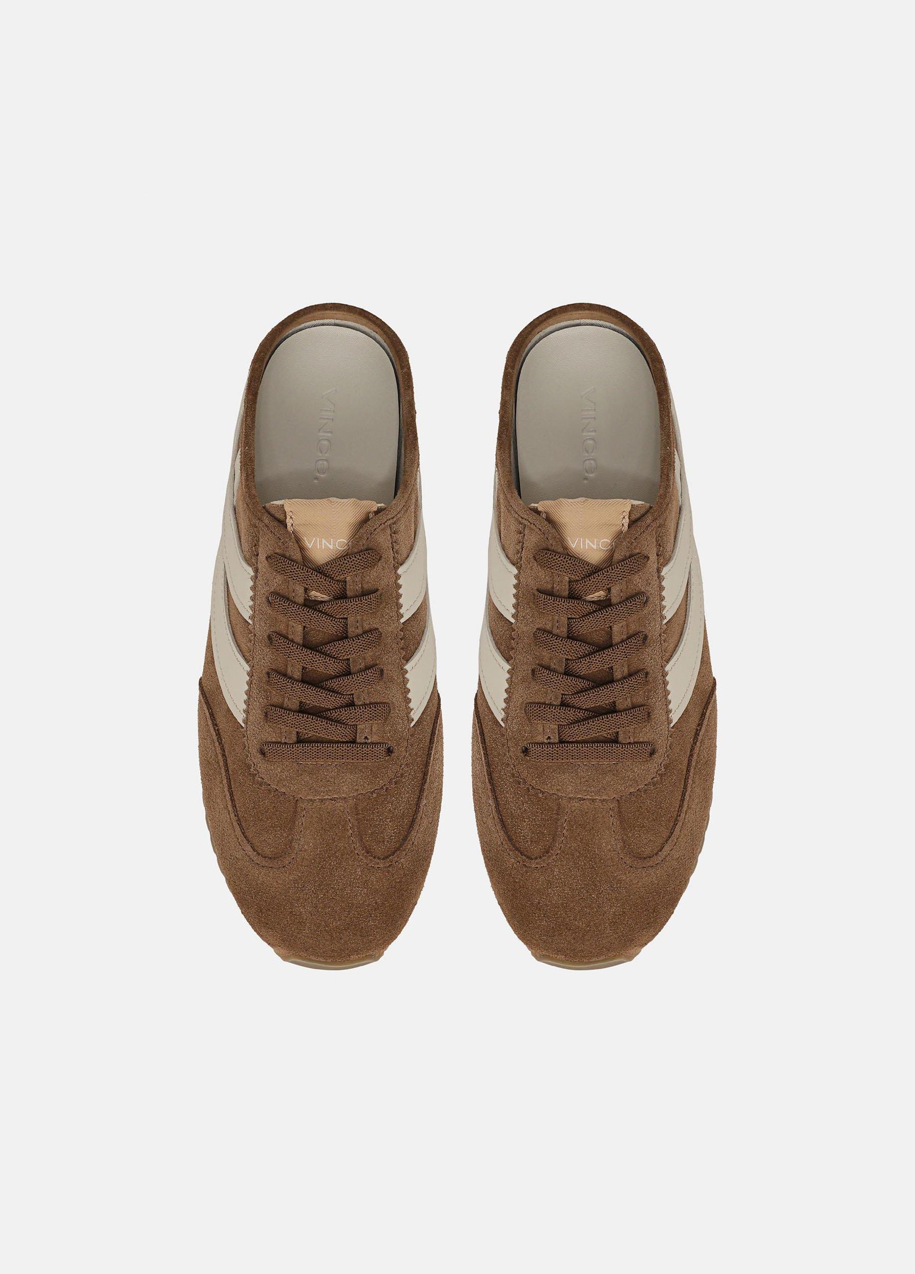 Our best-selling runner is reimagined in a slip-on mule silhouette in supple suede. Its details subtly nod to California's coastal surfing scene, from the overlapping leather side-stripe accents reminiscent of swell breaks to a patterned outsole inspired by ocean waves.