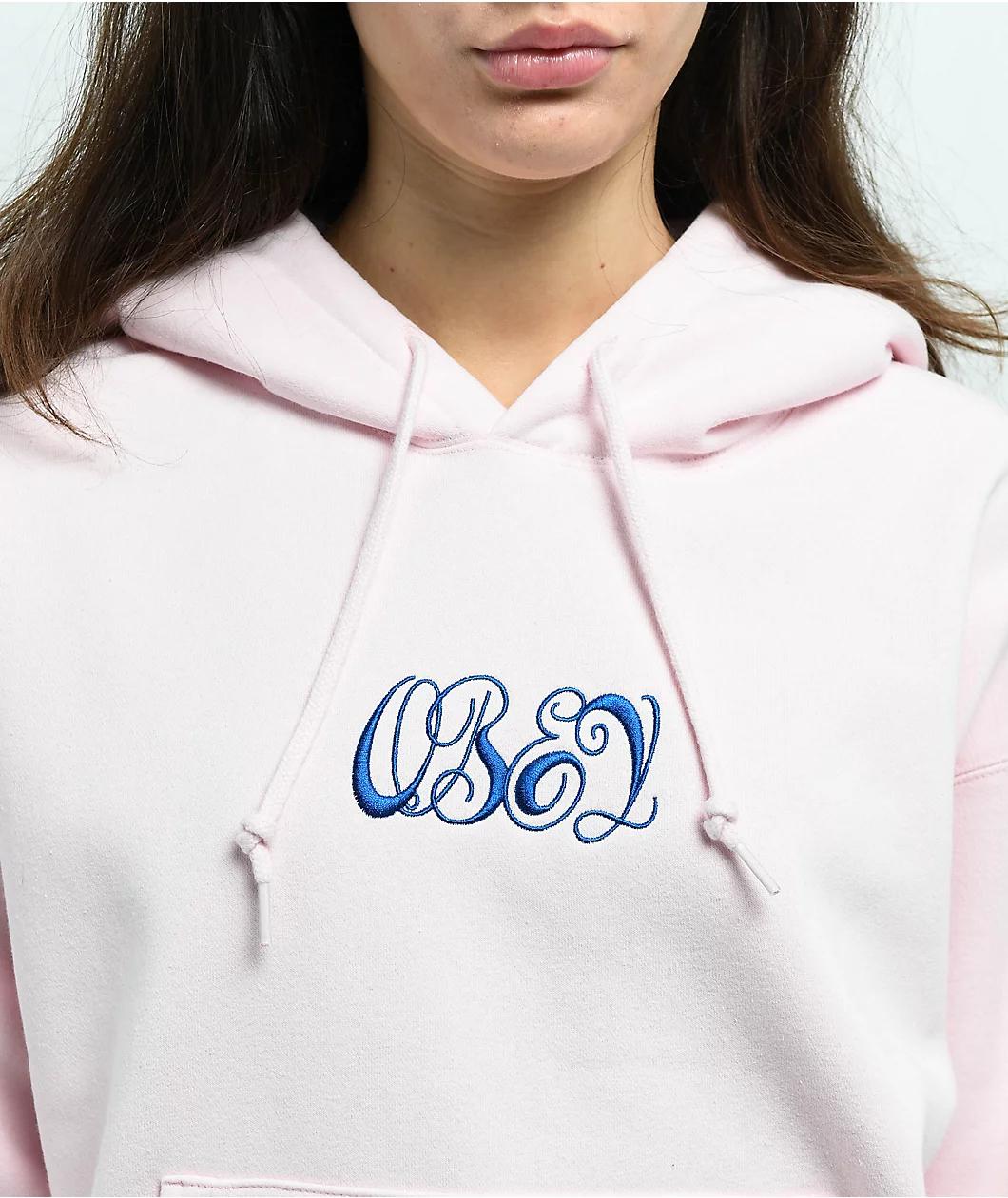 Available from Obey, the Ribbon hoodie arrives in a pink Sorbet color. Made from a soft cotton blend, the streetwear hoodie shows cursive branding embroidered on the front. Offering a kangaroo pouch pocket, an adjustable drawstring in the hood and ri
