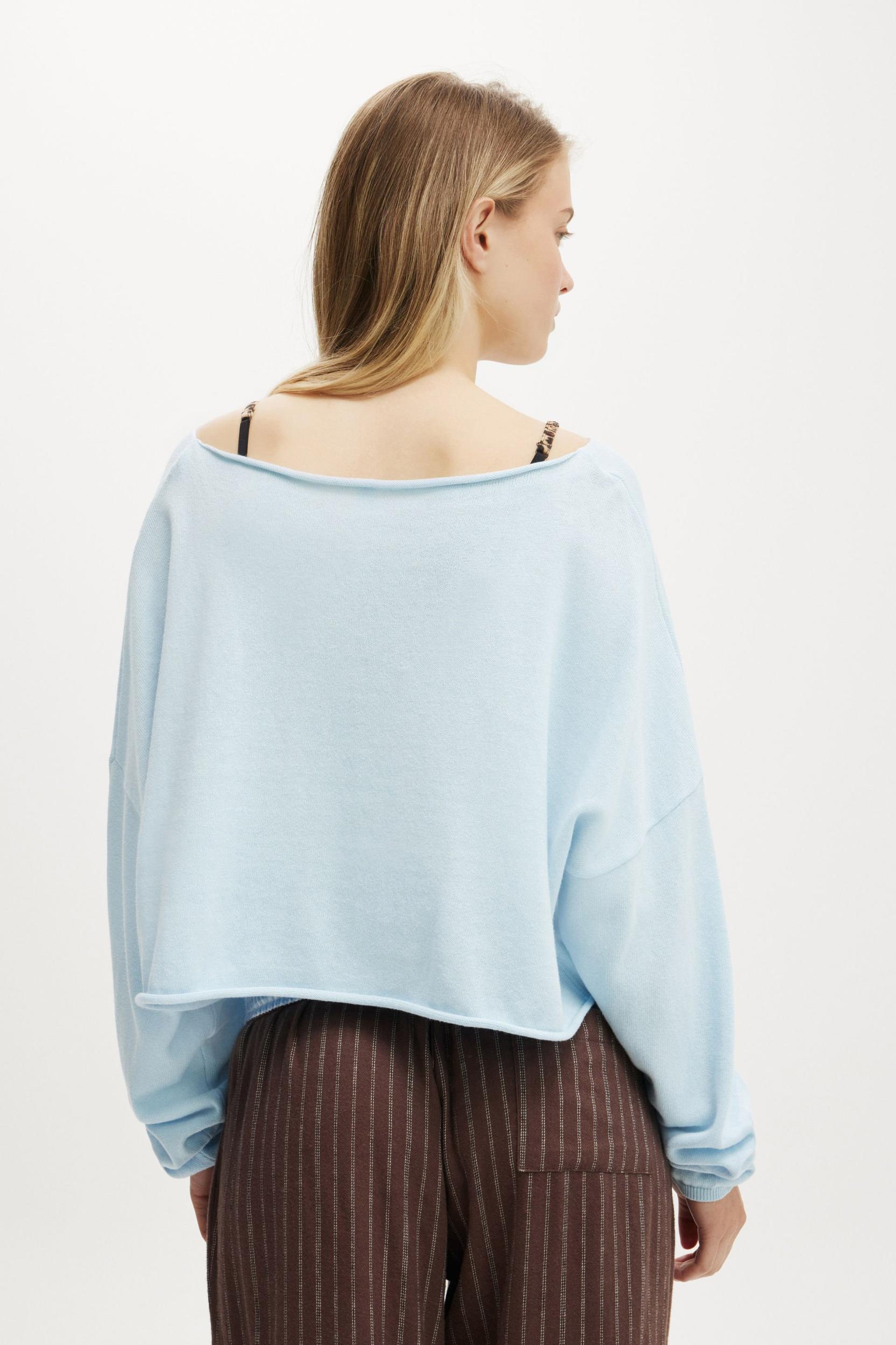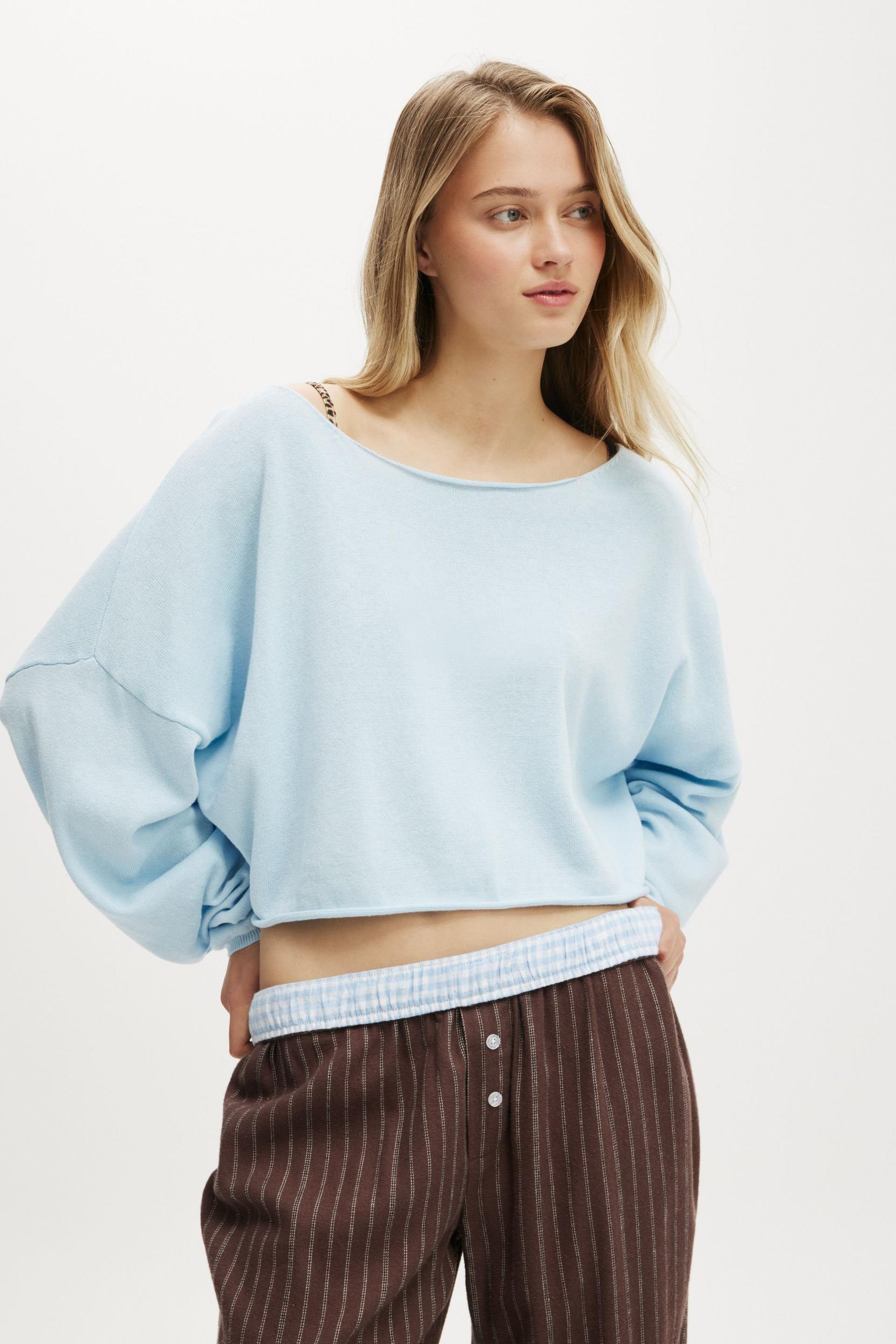 Off the shoulder knit jumper ,cropped body length ,long sleeves Main: 100% Cotton.