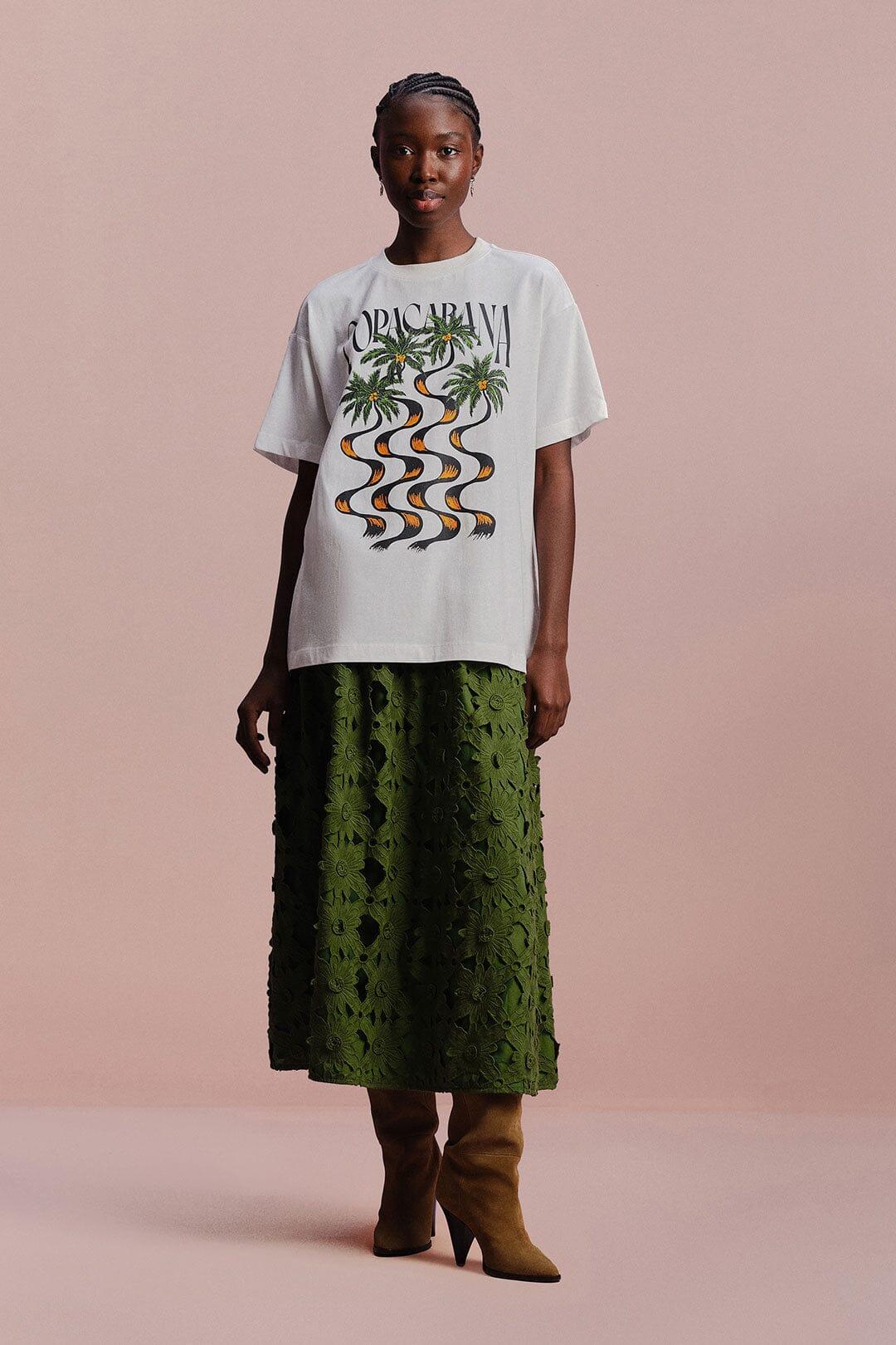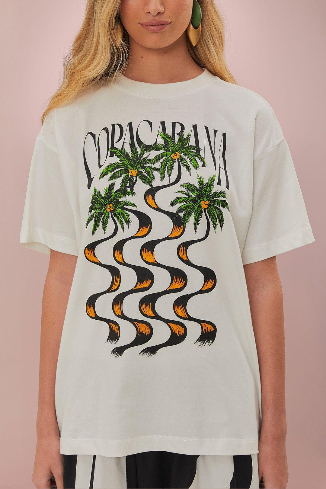 Embrace the vibrant spirit of Rio with the Off-White Copacabana Relaxed Organic Cotton T-Shirt. Featuring a playful graphic that brings to life the iconic charm of Copacabana, this tee is meticulously crafted from organic cotton for a gentle touch on the skin and the planet. Its relaxed silhouette and round neckline offer comfort and ease, making it a delightful addition to your everyday wardrobe. 100% Certified Organic Cotton: it has proven a lower environmental impact than conventional cotton, as it reduces water usage, greenhouse gas emissions, and the amount of chemicals used.Composition 100% COTTONCare Instructions MACHINE WASH, GENTLE CYCLE, DO NOT BLEACH, DO NOT TUMBLE DRY, LINE DRYING, IRON AT MEDIUM HEAT, DRY CLEAN WITH ANY SOLVENT EXCEPT TRICHLOROETHYLENESize and Fit Inches XXS XS S M L XL Bust 40 2/4 42 2/4 44 2/4 46 2/4 49 2/4 52 3/4 Waist 41 43 45 46 3/4 50 53 1/4 Length 27 1/4 27 3/4 28 1/4 28 3/4 29 1/4 30 Hip 43 3/4 45 3/4 47 3/4 49 2/4 56 56