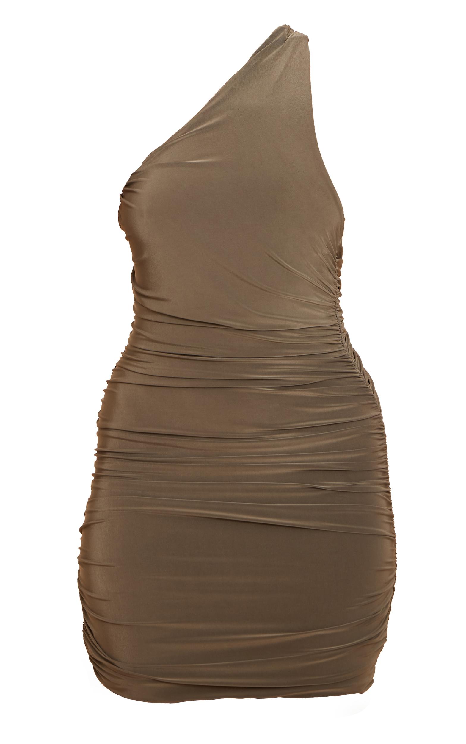 Opt for sleek and sultry in the olive soft touch ruched one shoulder mini dress. Made from an olive soft touch material, this mini features a one shoulder design and flattering ruching. Pair with slip-on heels and gold jewelry for a sophisticated evening look.Length approx 81.5cm/32inch (Based on sample size US 4)Model wears size UK 8/ EU 36/ AUS 8/ US 4Model Height - 5ft 9inchp]:!mb-4inch>Category: DressesProduct type: Bodycon DressColor: OliveMaterial: Slinky JerseyOccasion: Evening