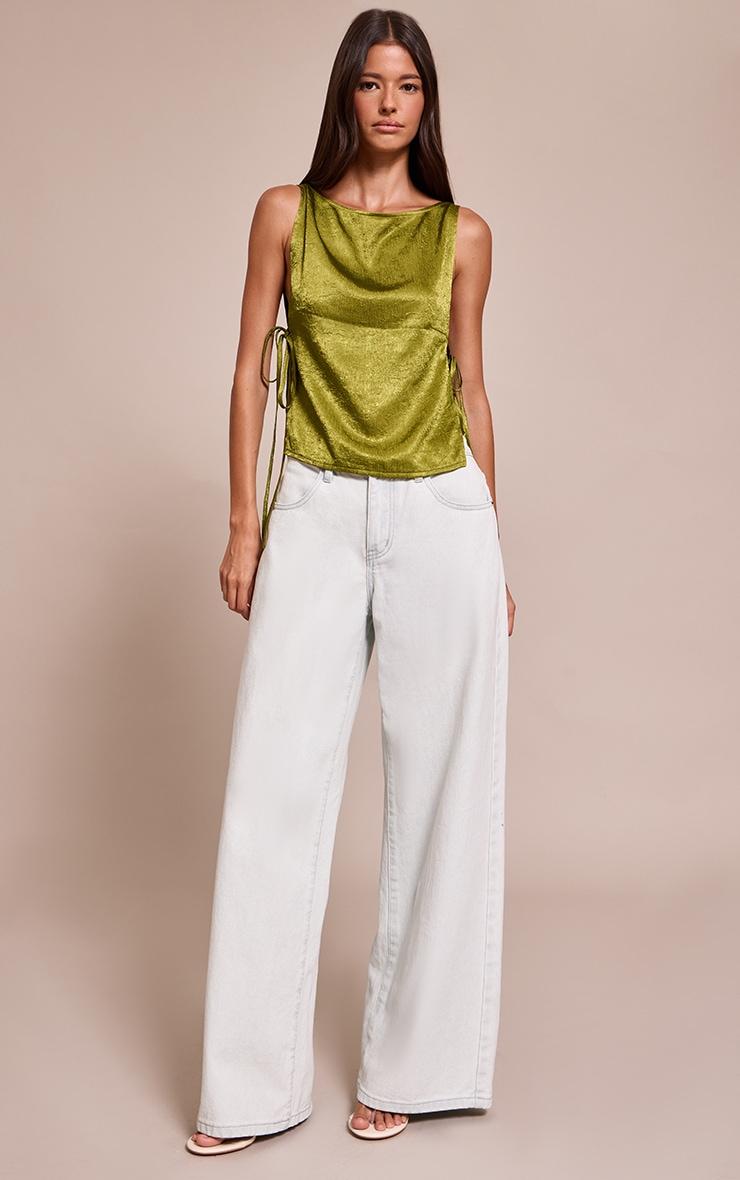 Add a pop of color to your wardrobe with this olive textured satin tie side long top. Made from olive toned satin, this top has tie fastenings at the sides and a hip length fit. Add light wash jeans and nude stiletto heels for an elevated daytime date look.Length approx 48.5cm/19inch (Based on sample size US 4)Model wears size UK 8/ EU 36/ AUS 8/ US 4Model Height - 5ft 7inchp]:!mb-4inch>Category: TopsProduct type: Cami TopColor: OliveMaterial: Tailored WovenDesign: PlainNeckline: SquareSleeves: SleevelessOccasion: Evening