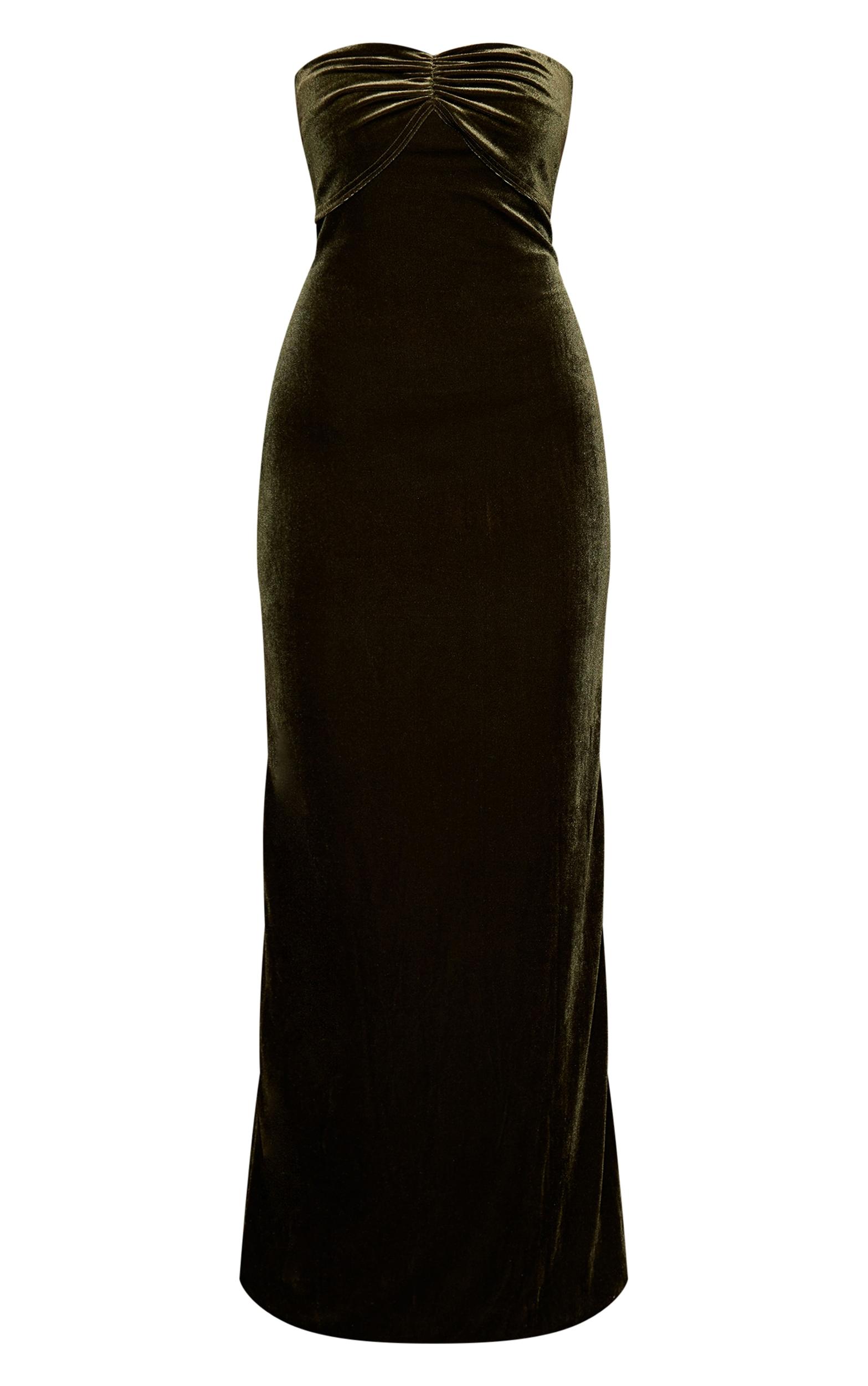 The olive velvet twist bandeau maxi dress radiates opulence and confidence. Designed with a twist front detail and made from plush velvet, it sculpts the body with a soft, elegant drape. Style it with metallic heels and minimal jewelry for a high-impact evening look.Length approx 145cm/57inch (Based on sample size US 4)Model wears size UK 8/ EU 36/ AUS 8/ US 4Model Height - 5ft 9inchp]:!mb-4inch>Brand: PrettyLittleThingCategory: DressesProduct type: Bodycon DressColor: OliveMaterial: VelvetOccasion: Occasion
