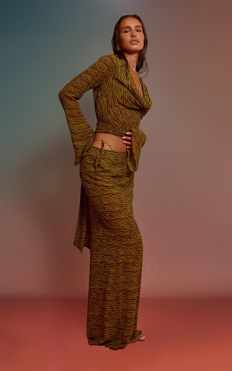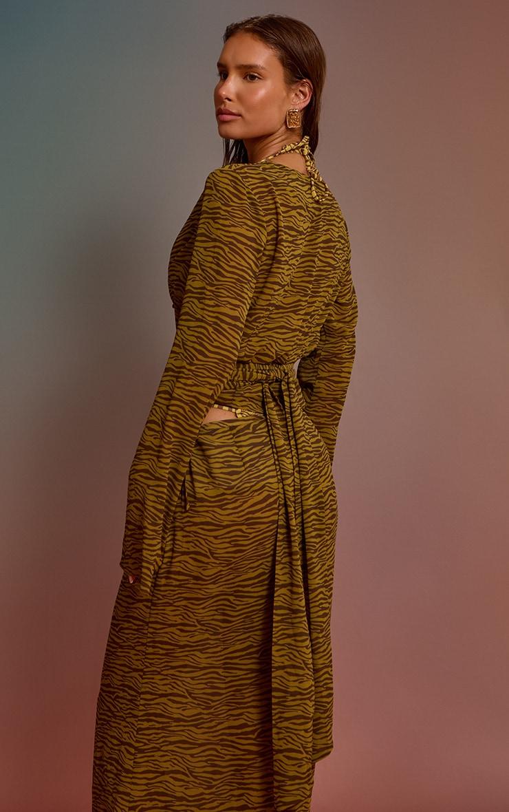 Perfect your poolside look in this olive zebra printed chiffon wrap waist beach top. Crafted from olive toned zebra printed chiffon, this top features a cowl neckline, long sleeves and a wrap waist detail. Pair it with the matching skirt and bikini for a luxe look.Length approx 38cm/15inch (Based on sample size S)Model wears size SModel Height - 5ft 6inchp]:!mb-4inch>Brand: PrettyLittleThingCategory: SwimwearProduct type: Beach TopColor: OliveMaterial: ChiffonOccasion: Day