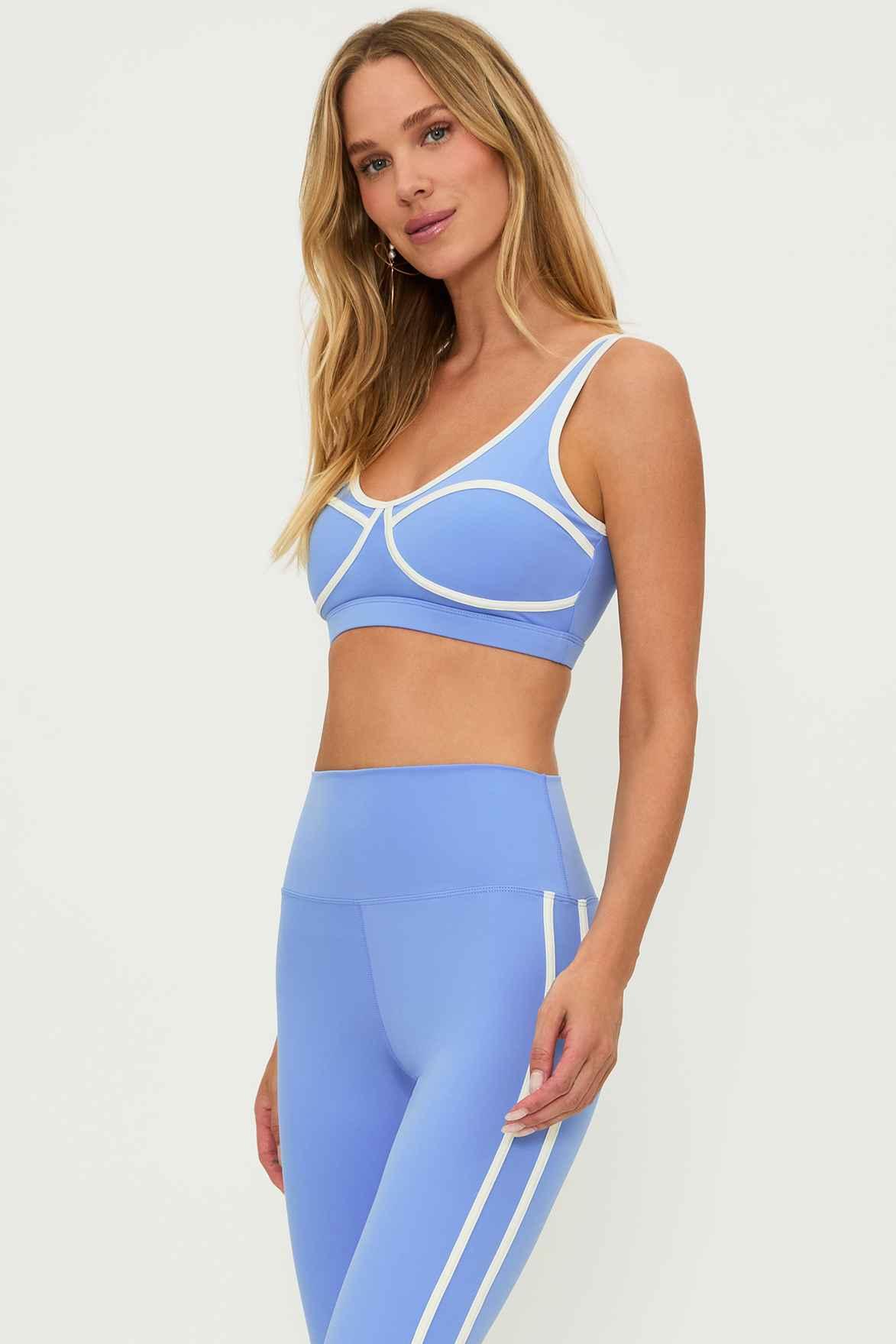 Cashmere Mini Stripe Halter Tank - Azure Blue/White