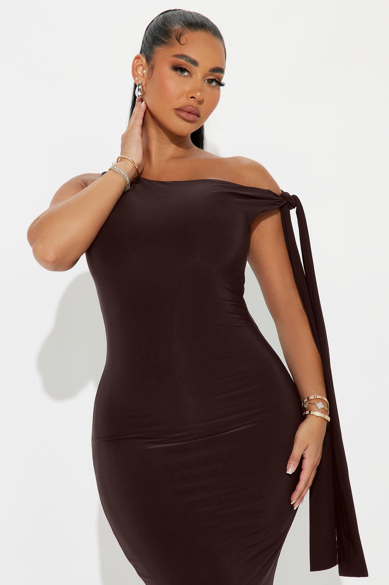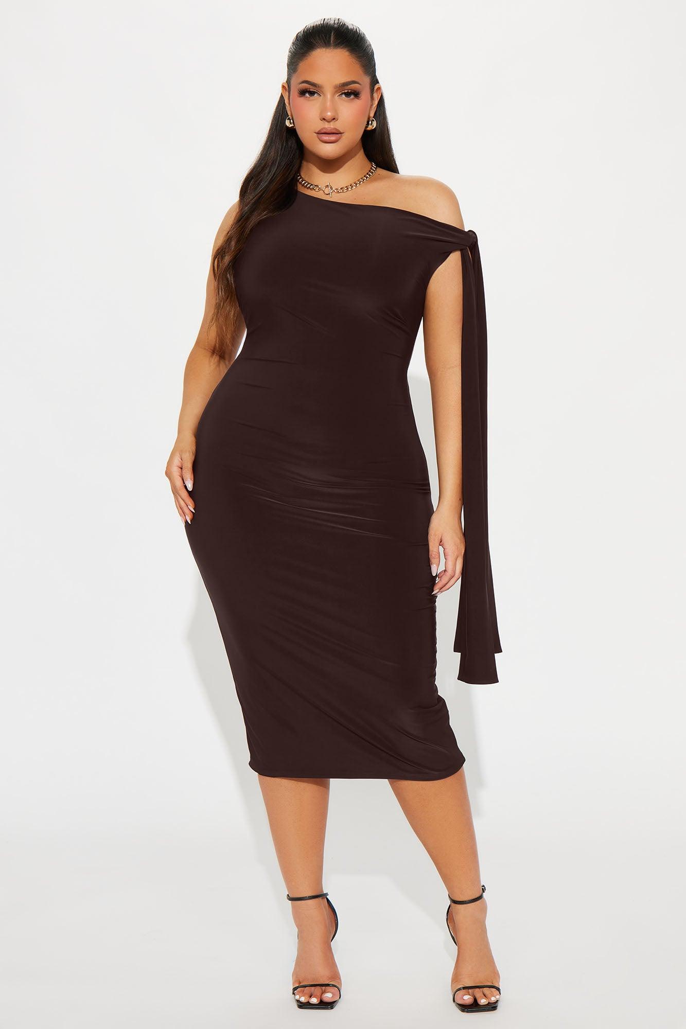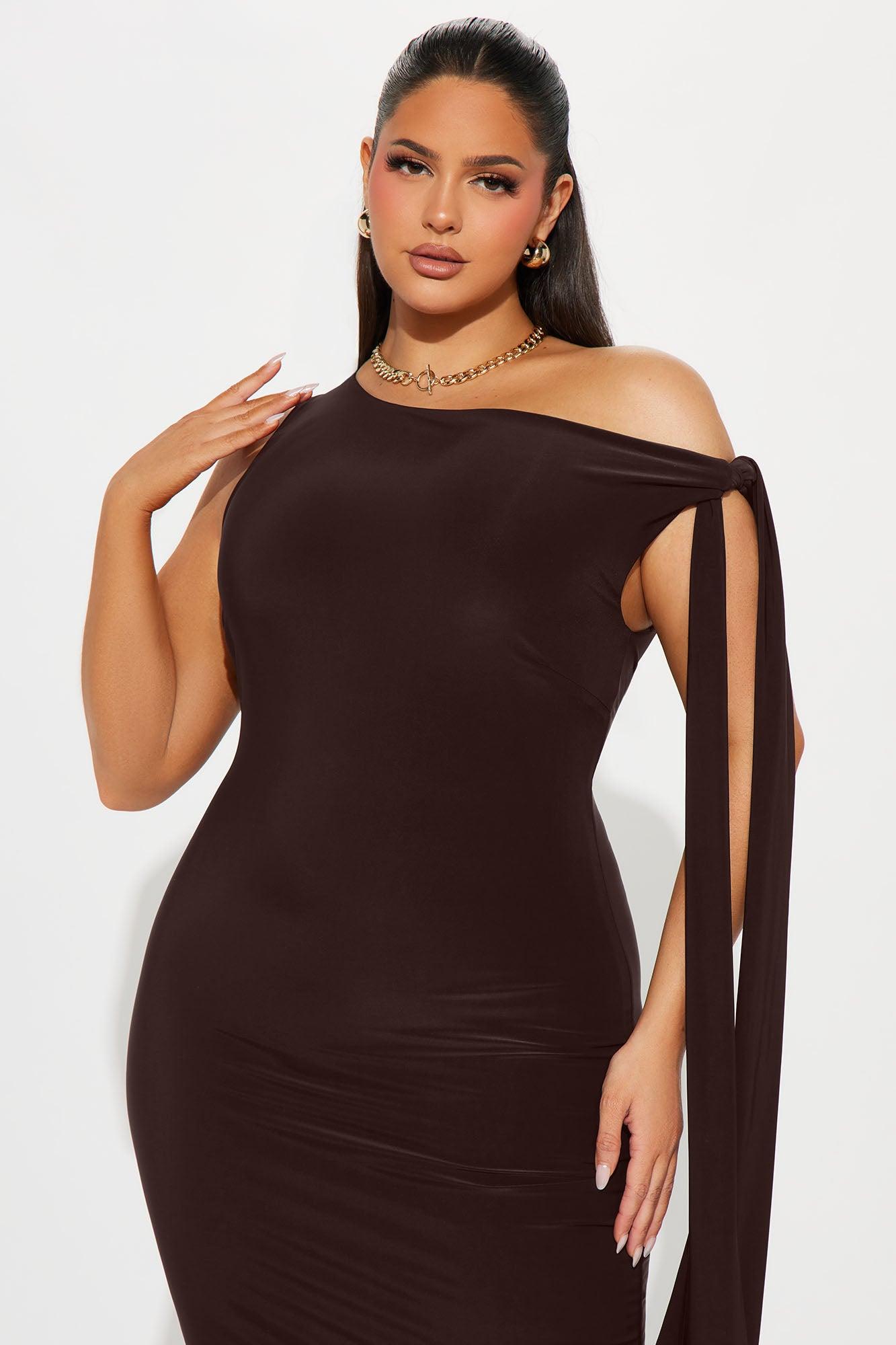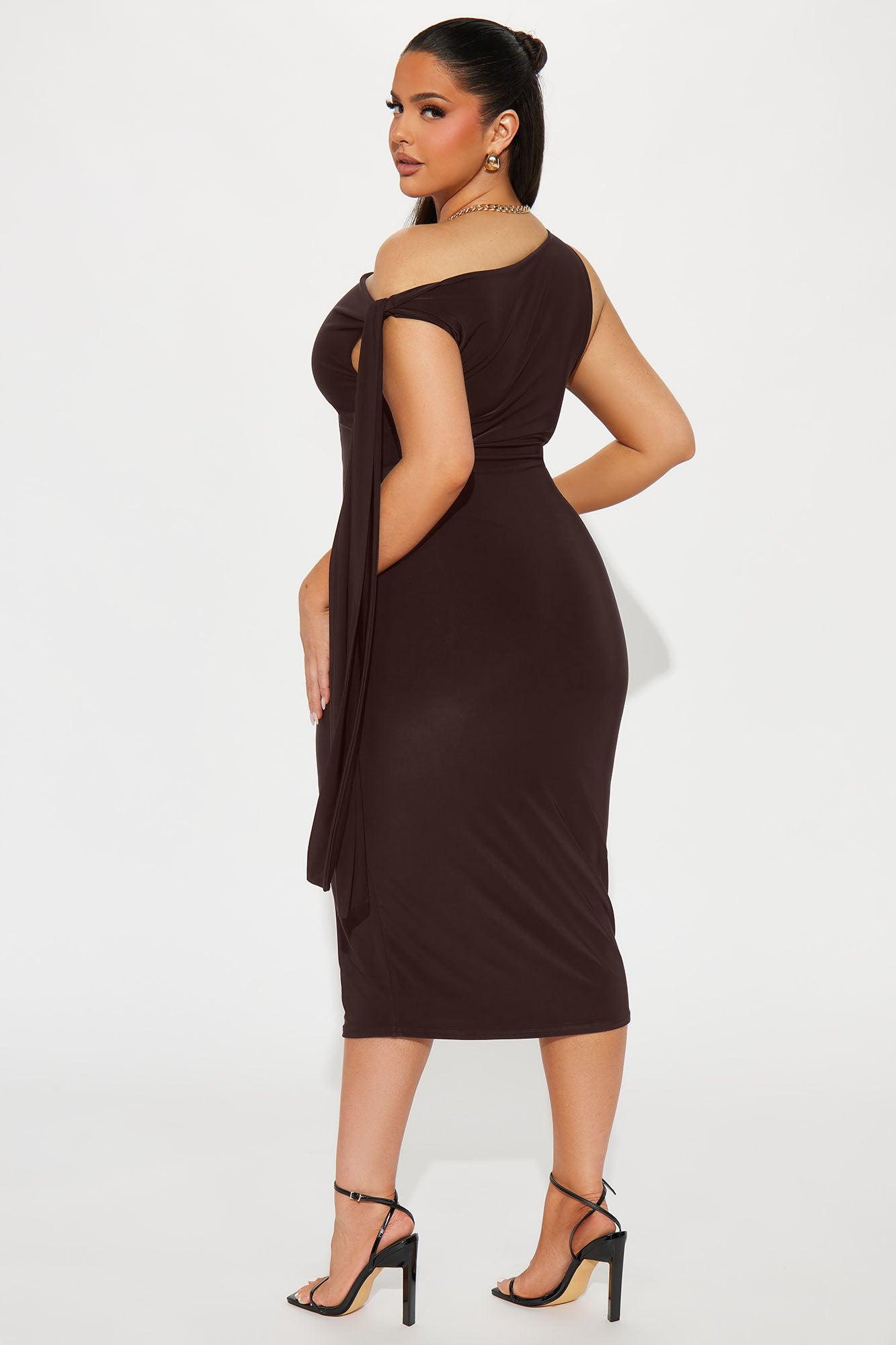 Olympia Twist One Shoulder Midi Dress - Chocolate Female