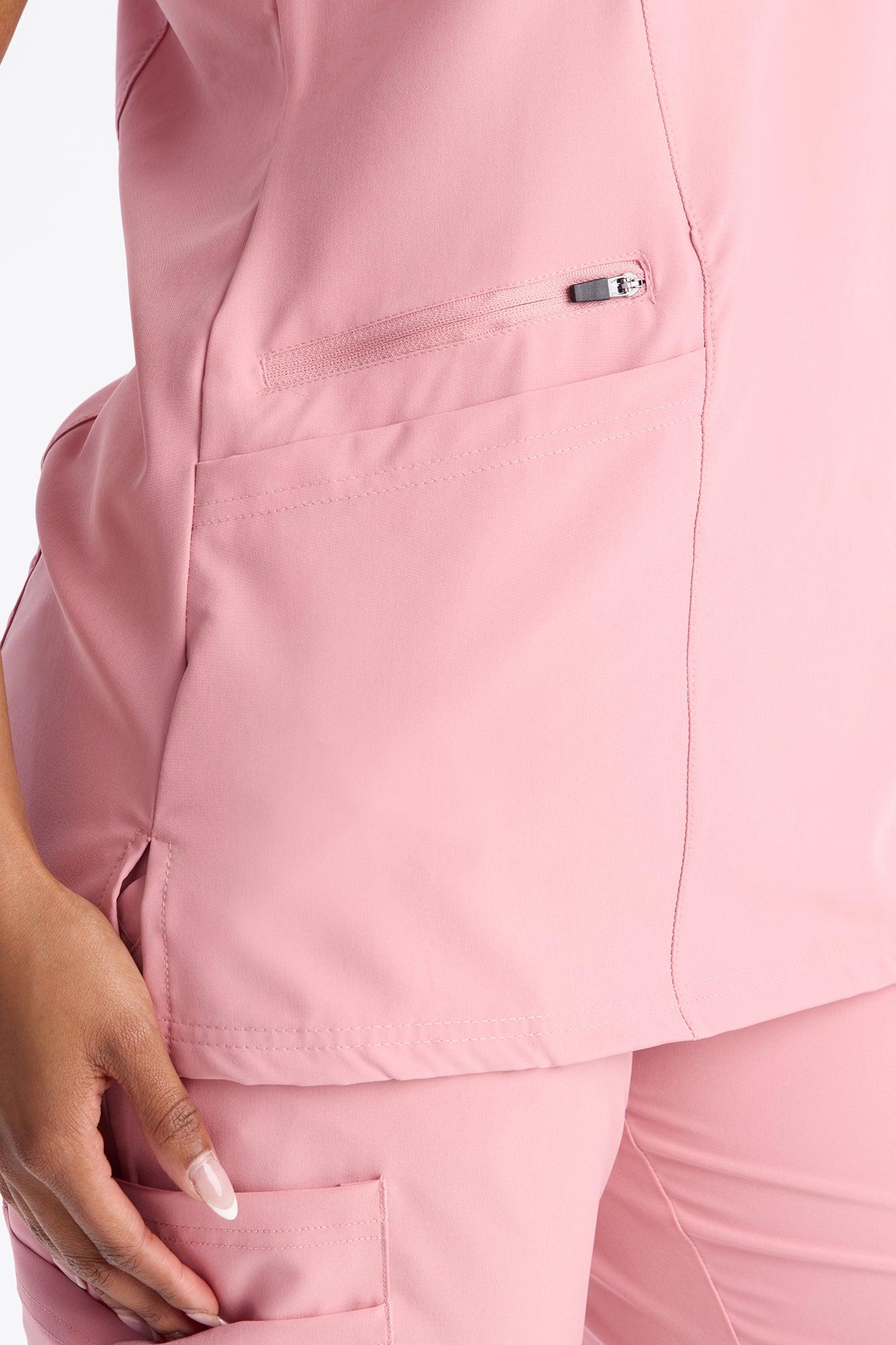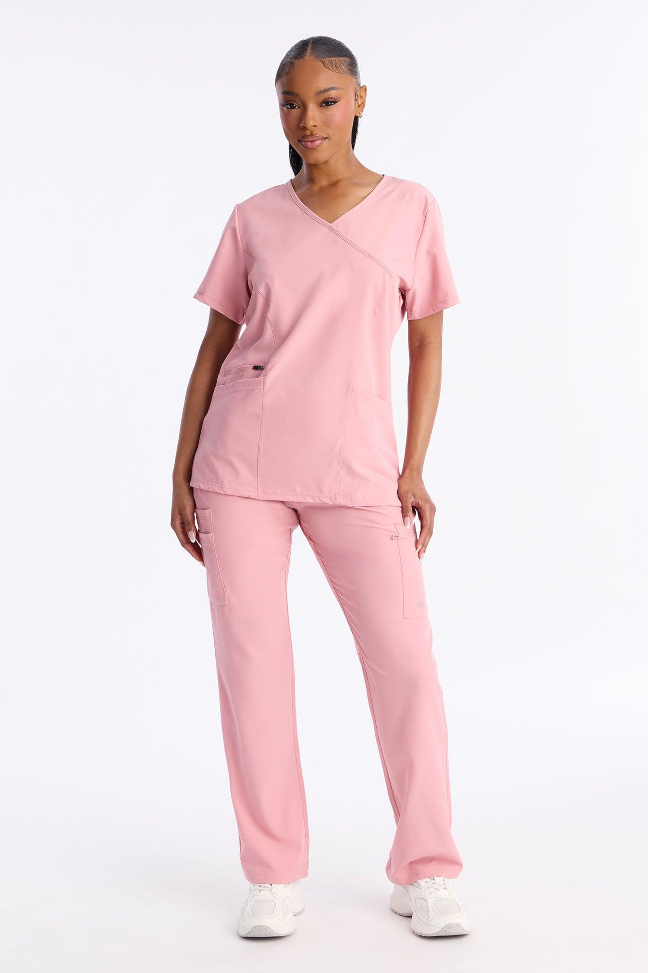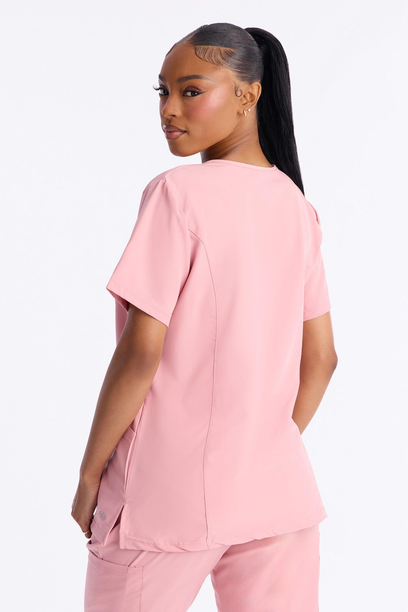 On High Alert Stretch Faux Wrap V Neck Scrub Top - Rose Female