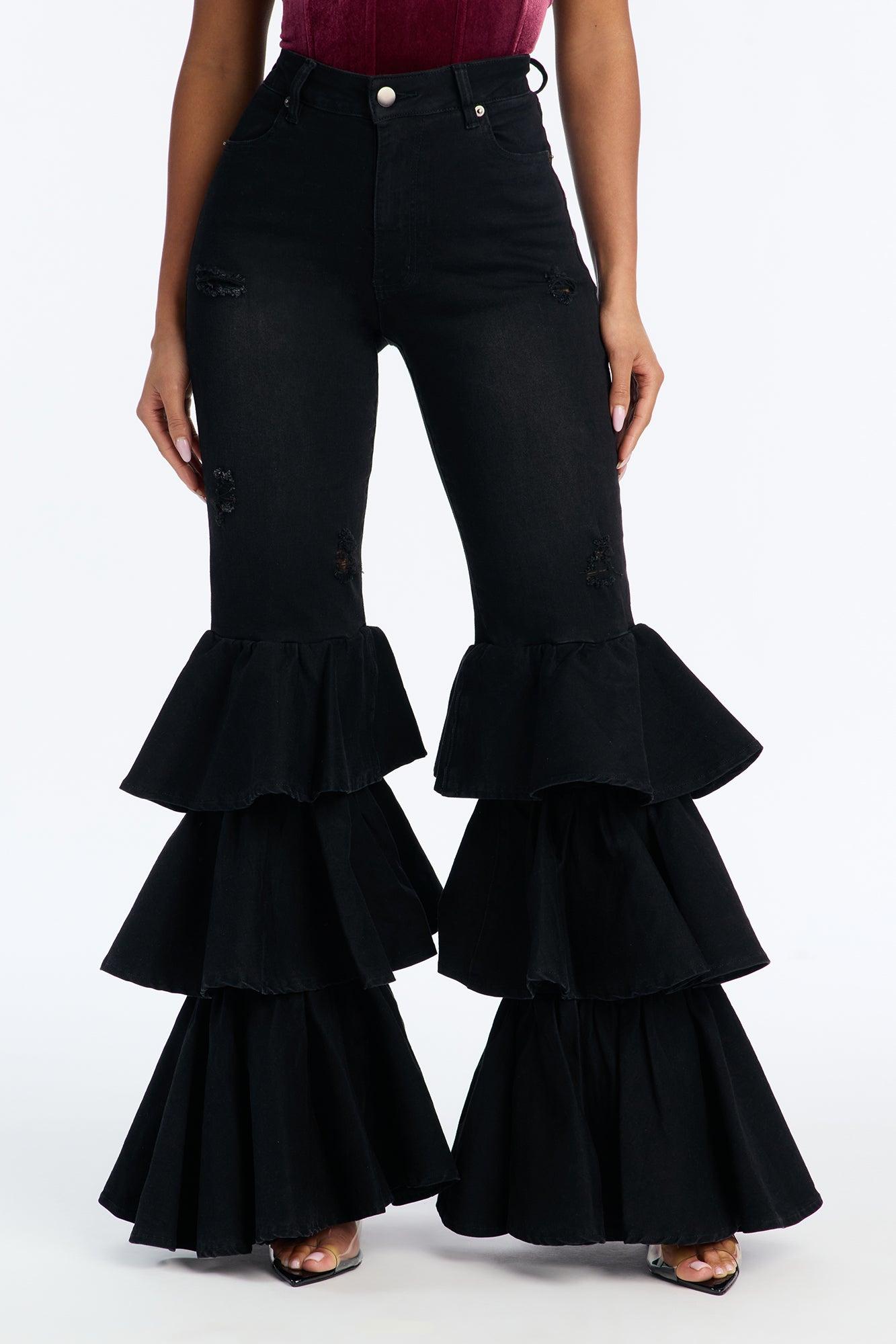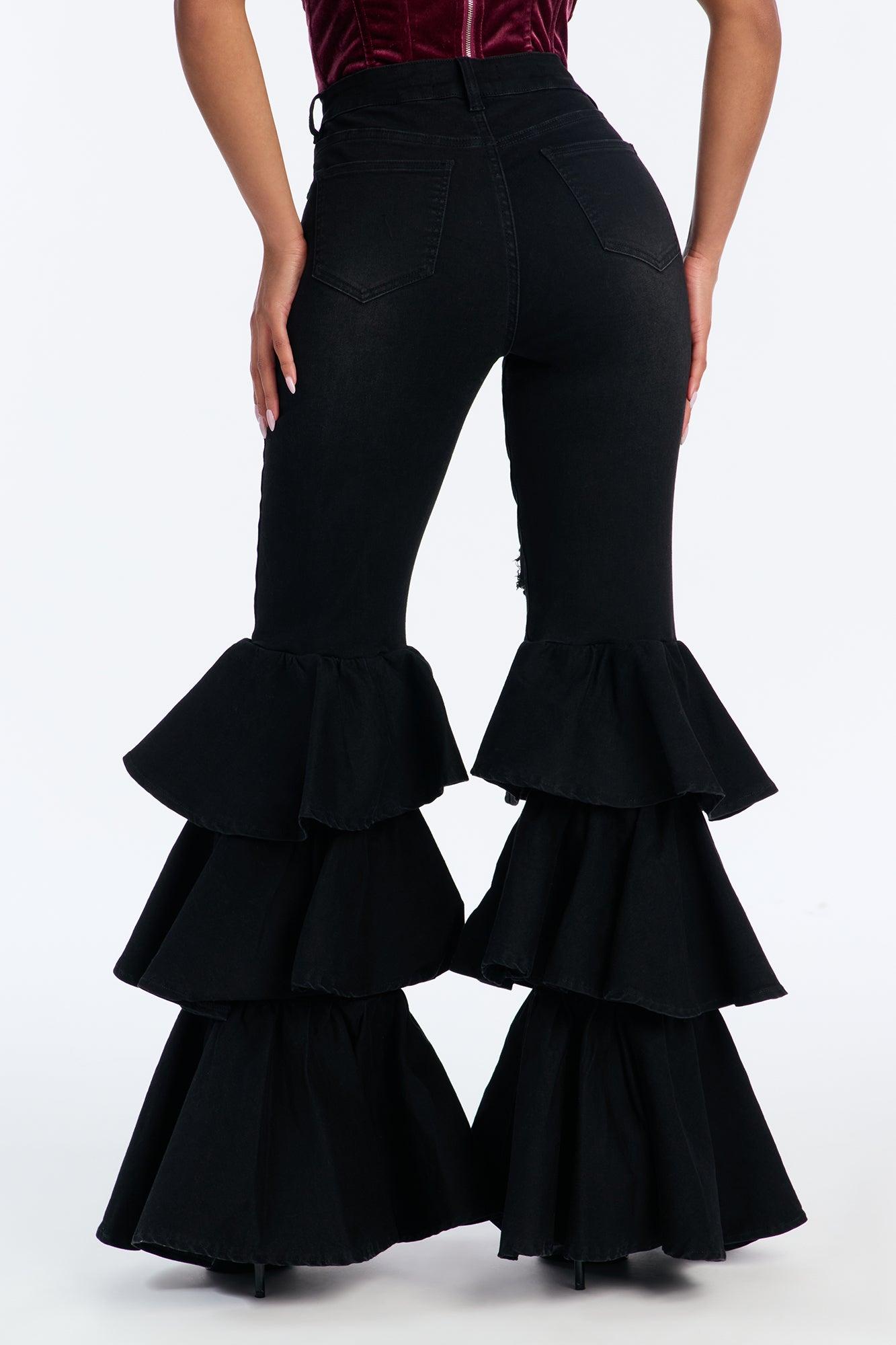On Rhythm Tiered Ruffled Stretch Flare Jeans - Black Female