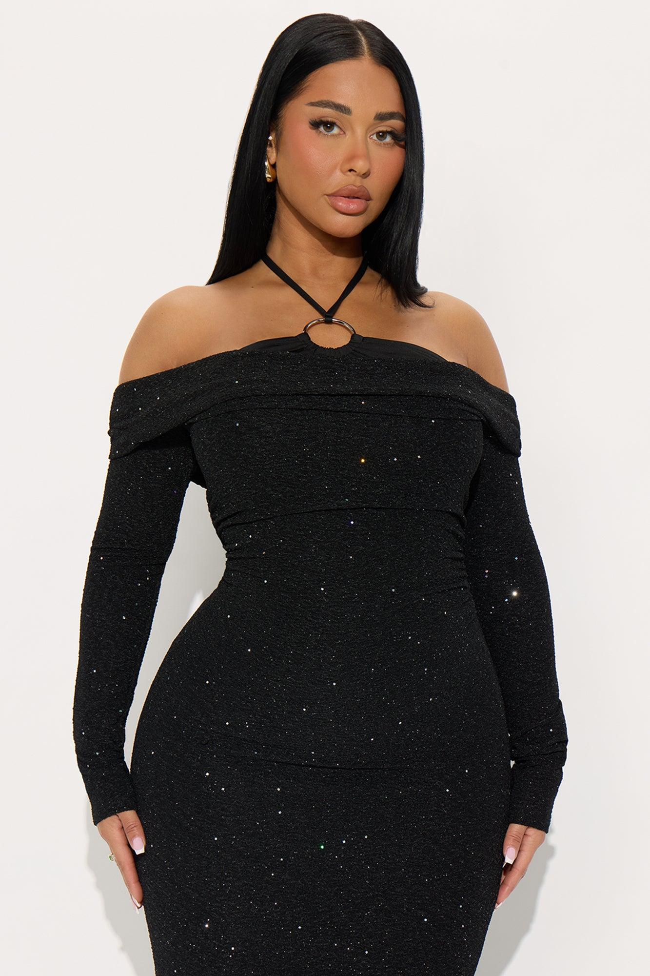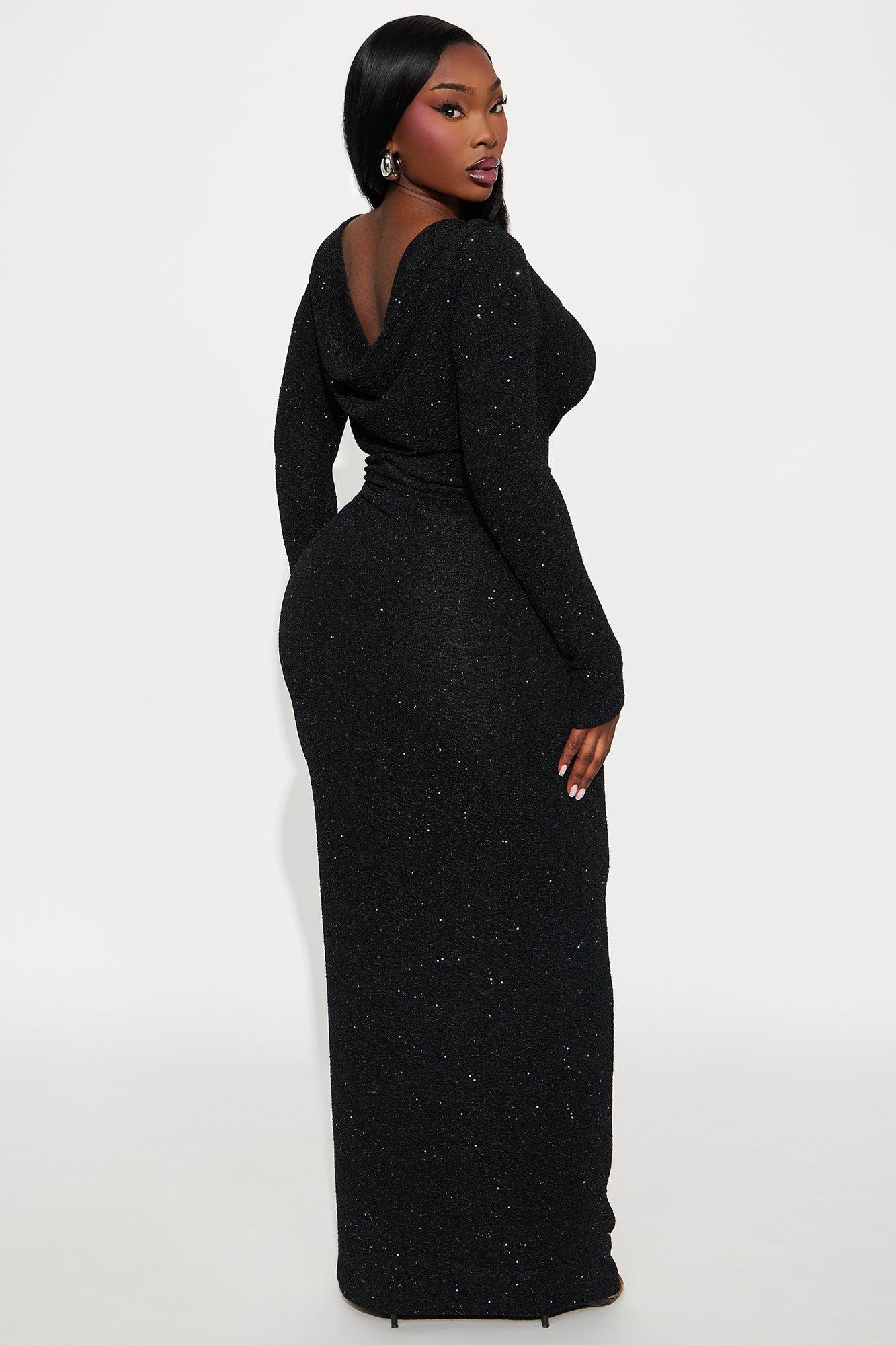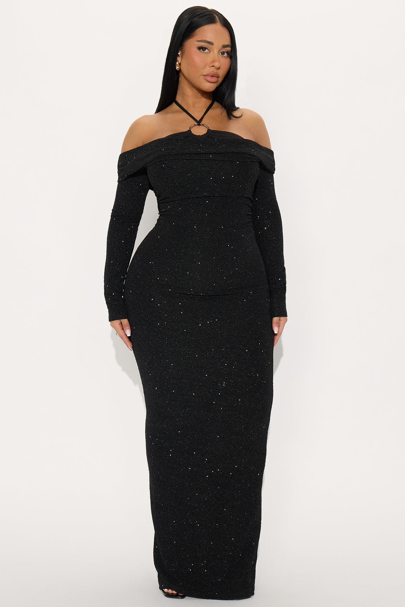Outside For The Night Glitter Maxi Dress - Black Female