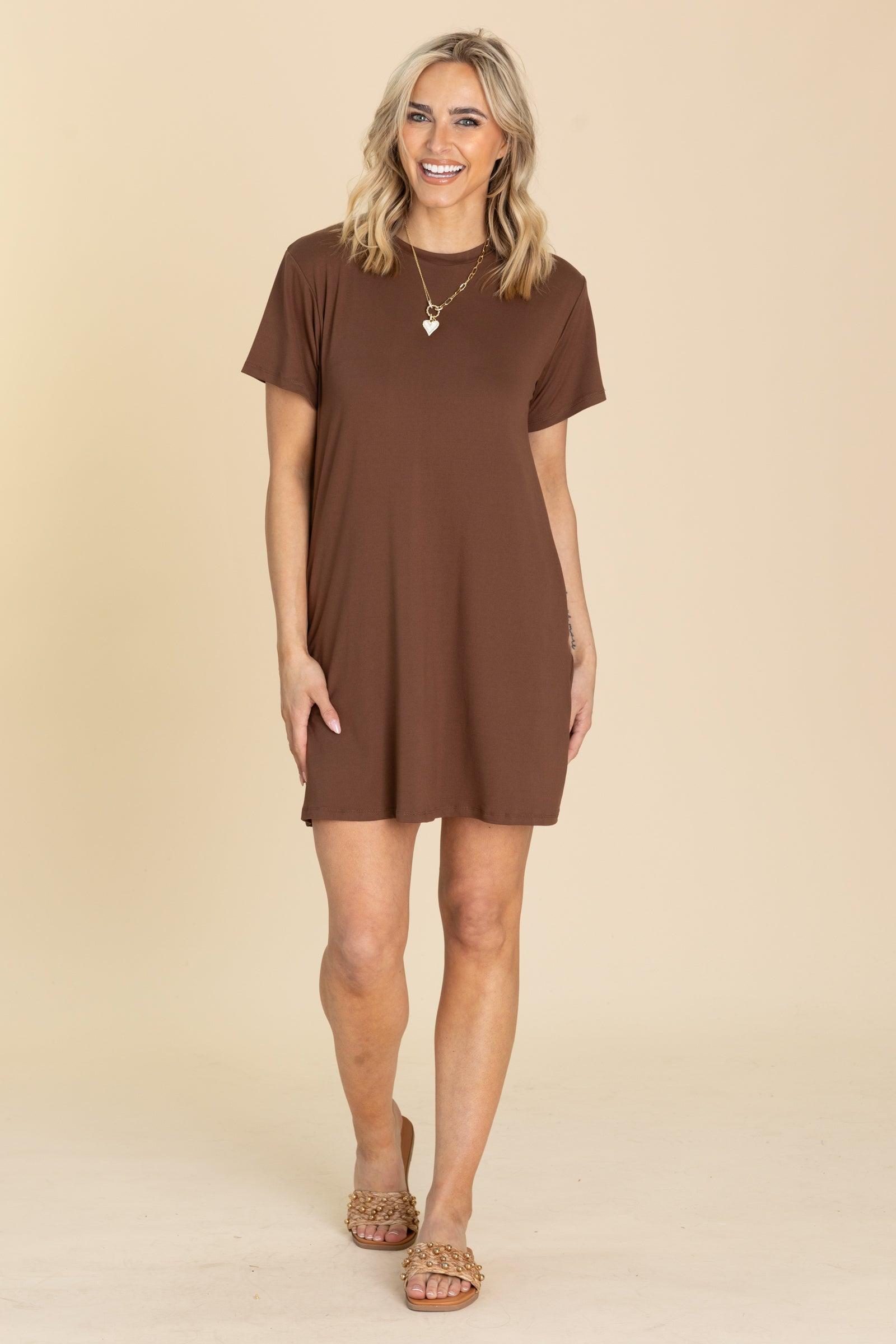 Product Details Colors: Navy/ Red/ Mocha/ Fuchsia/ Black Print: Solid Neckline: Round Sleeve: Short Sleeve Hemline: Straight Brand: Yelete Material and Care 95% Polyester 5% Spandex Hand Wash Cold Hang/Line Dry Size and Fit Small: Bust 36" Waist 37" Length 34" Medium: Bust 38" Waist 39" Length 34.5" Large: Bust 40" Waist 41" Length 35" X Large: Bust 42" Waist 43" Length 35.5" 2X Large: Bust 44" Waist 45" Length 36" 3X Large: Bust 46" Waist 47" Length 36.5" Sarah is 5’8” and wearing her true size small Courtney is 5’8” and wearing her true size large