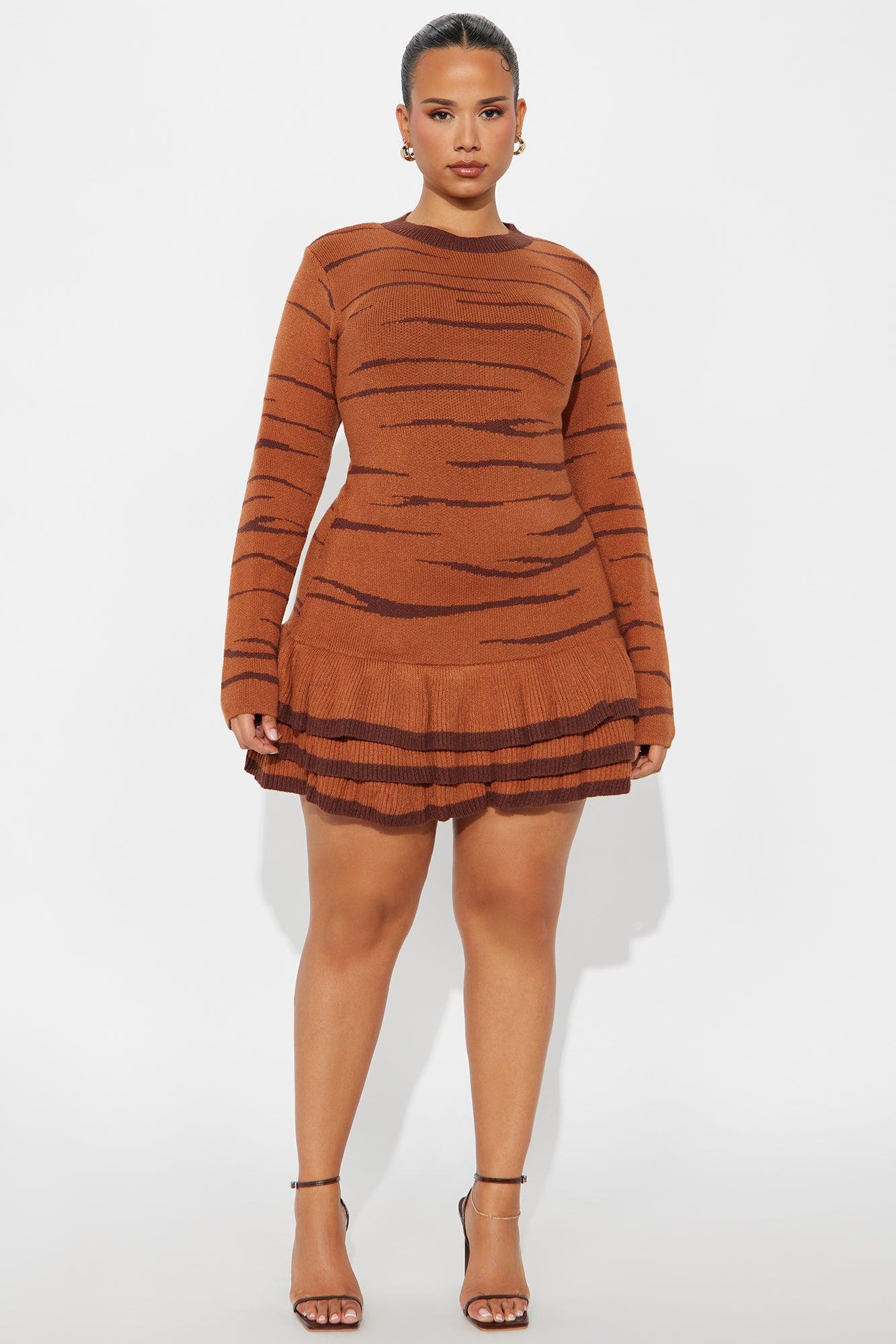On The Prowl Animal Print Sweater Mini Dress - Cognac Female