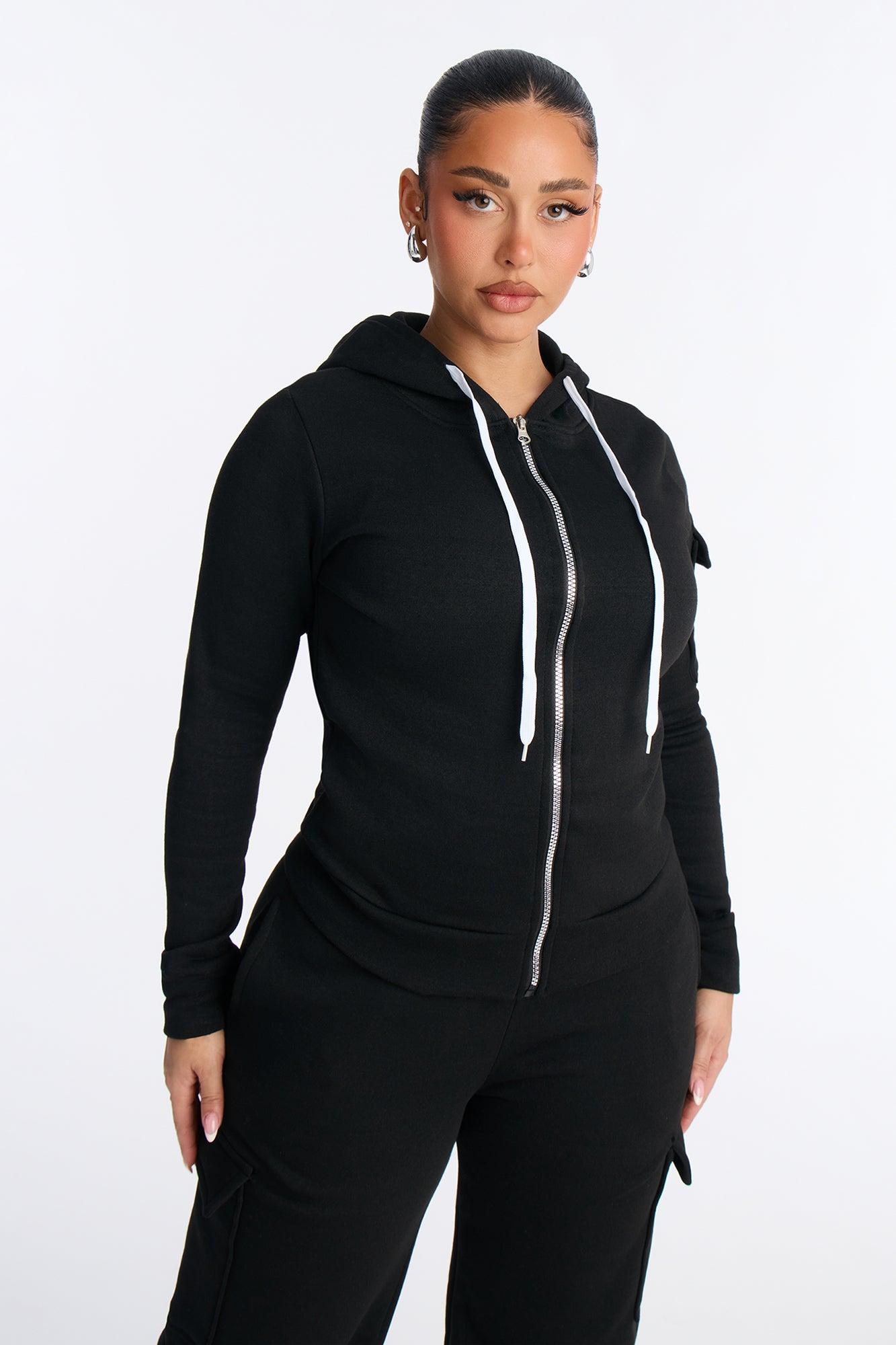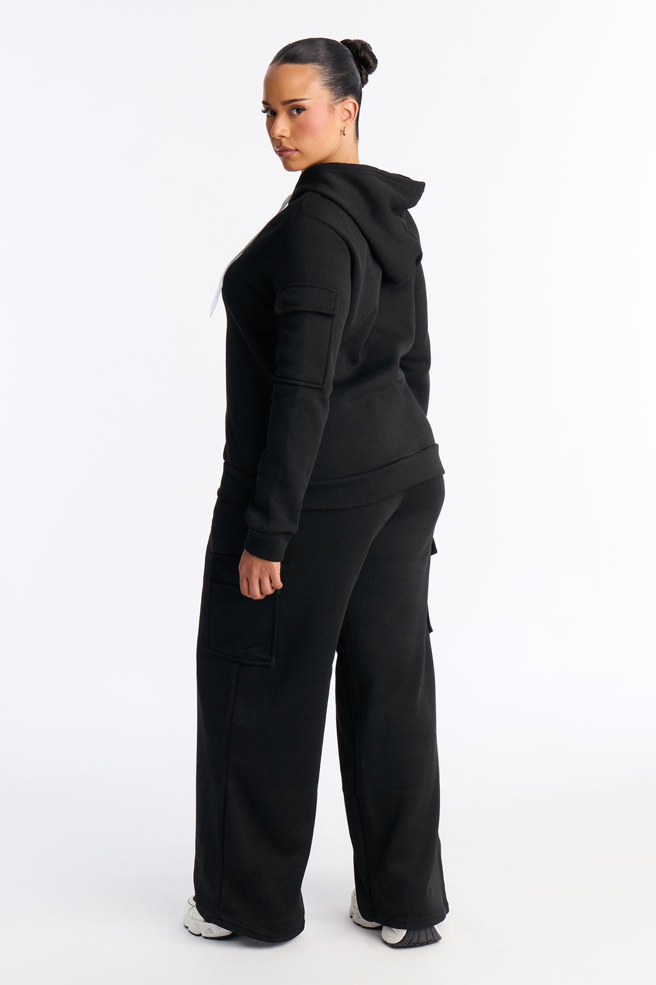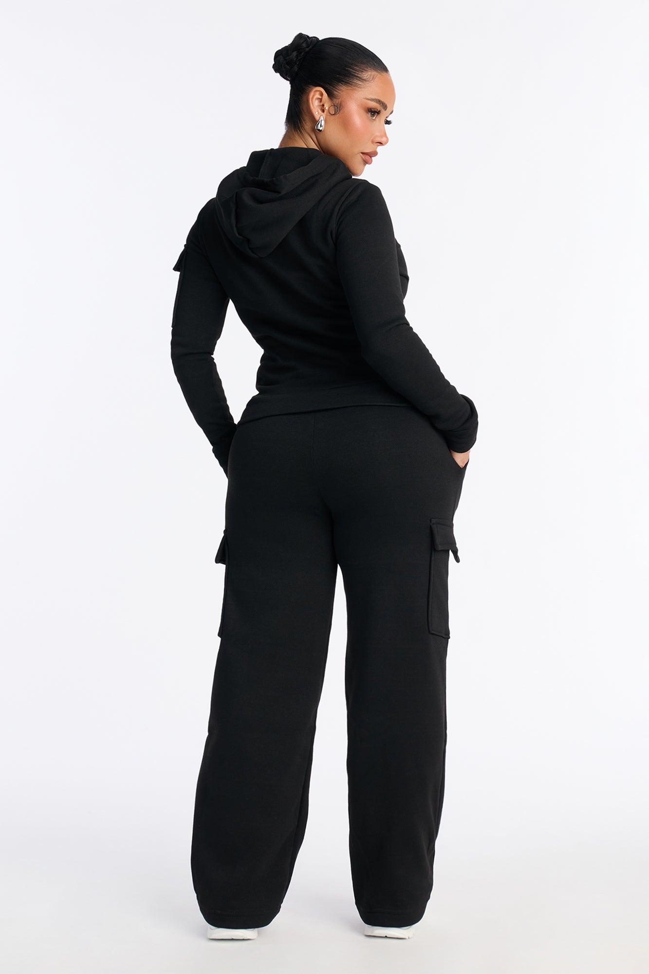 On The Run Cargo Fleece Pant Set - Black Female Product Image