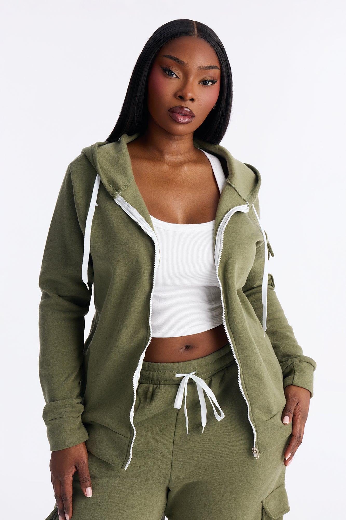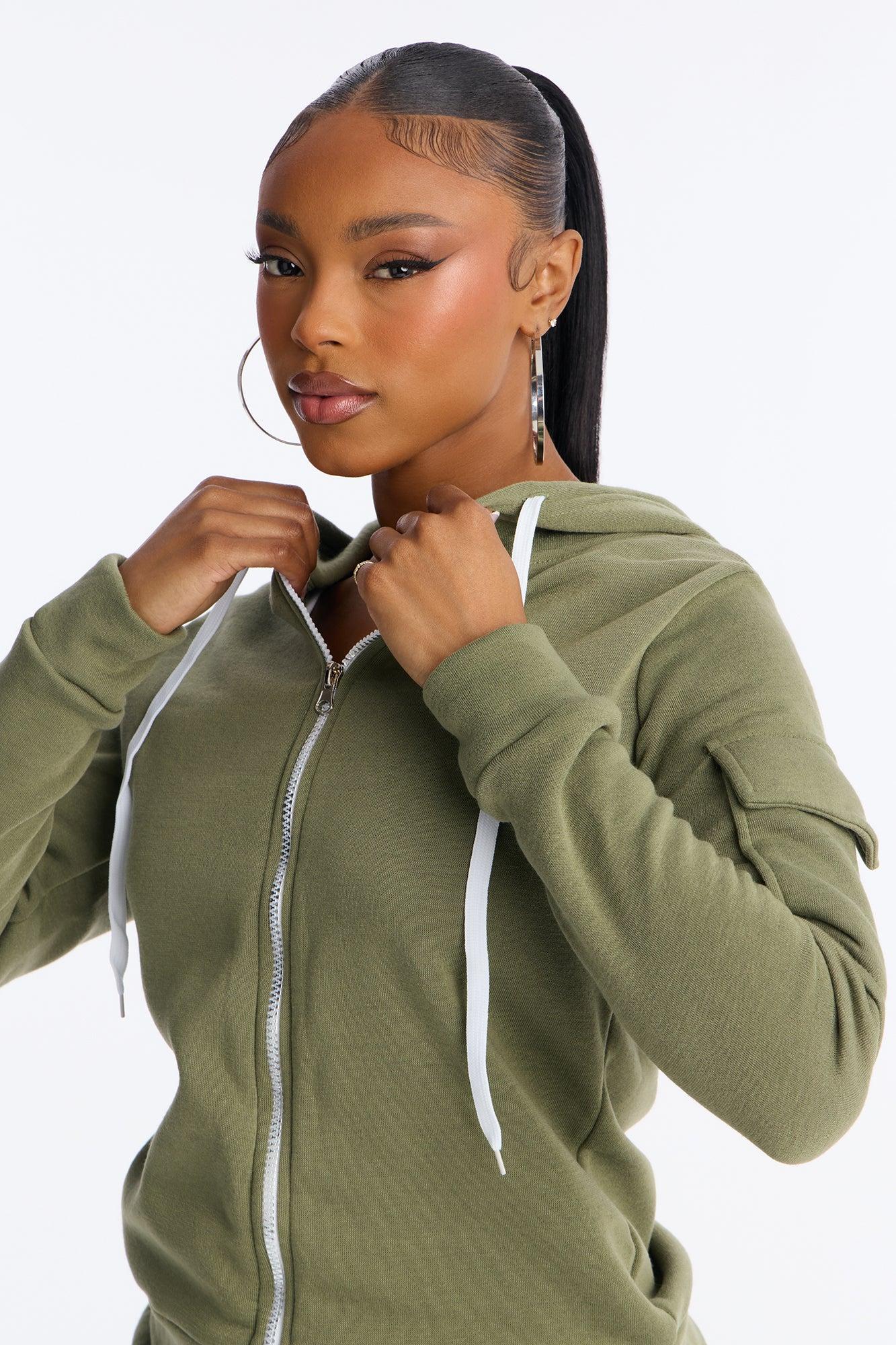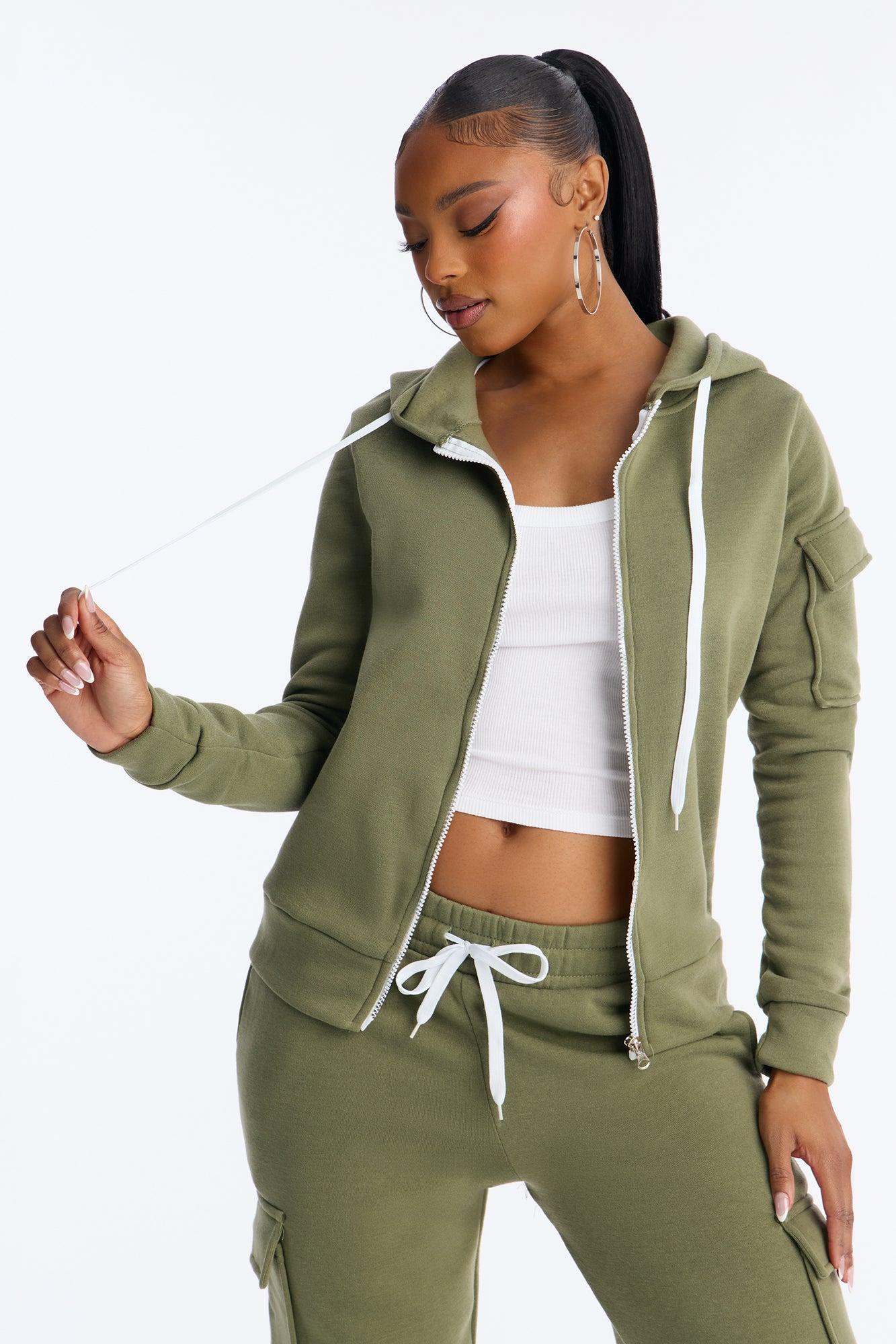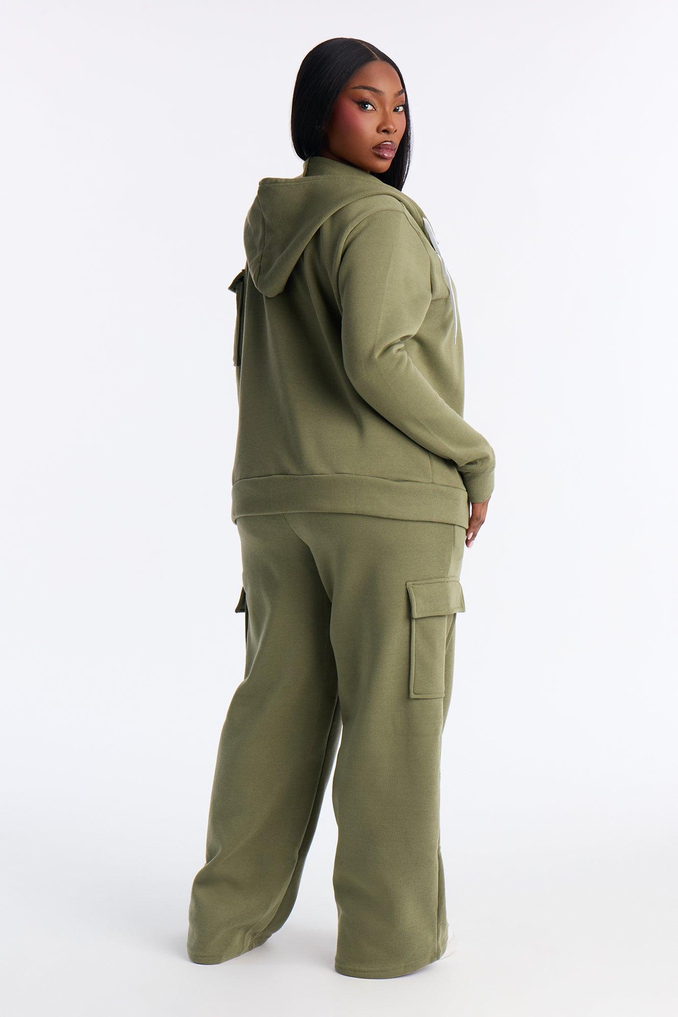 On The Run Cargo Fleece Pant Set - Olive Female Product Image