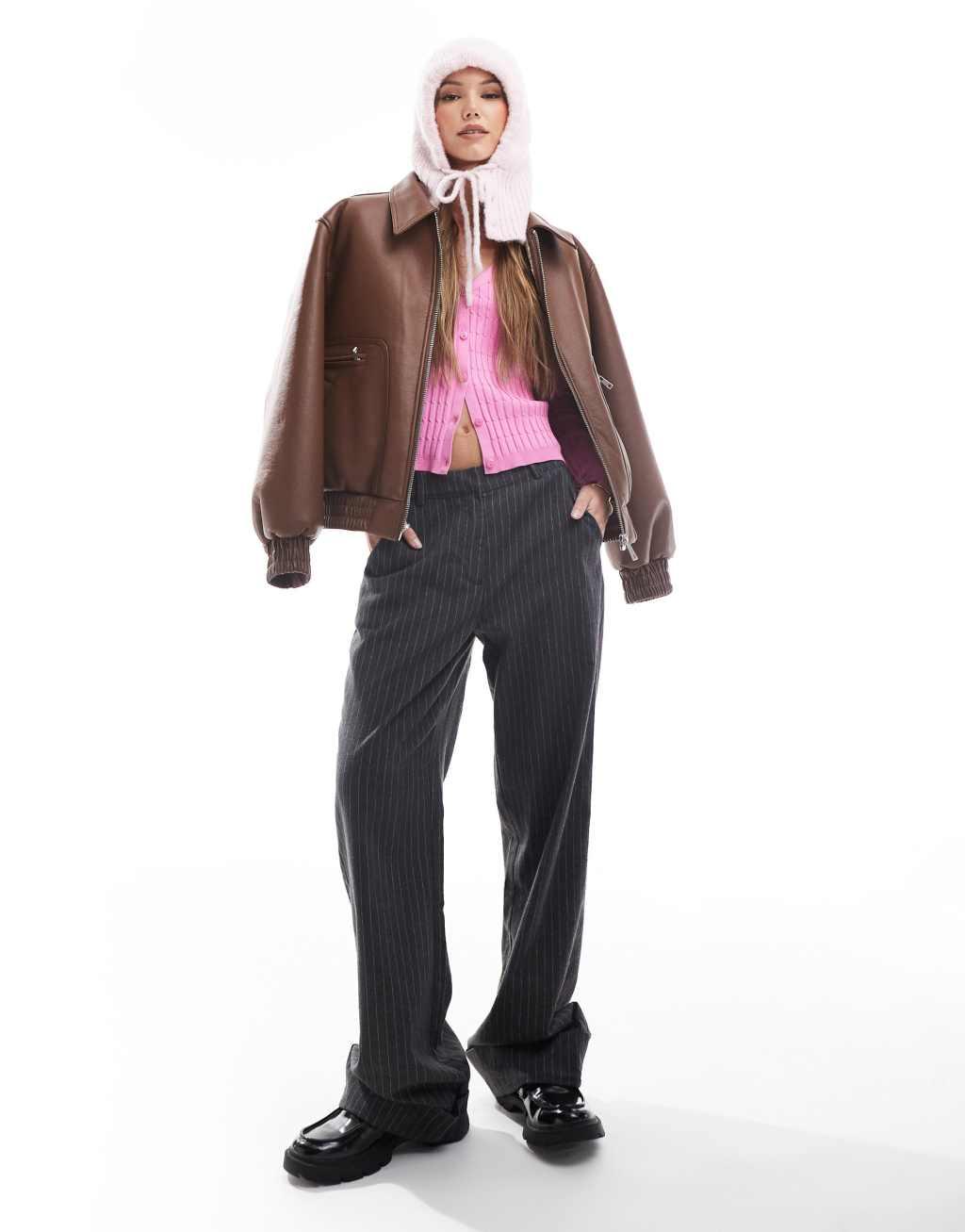 ONLY cable knit polo cardigan in pink