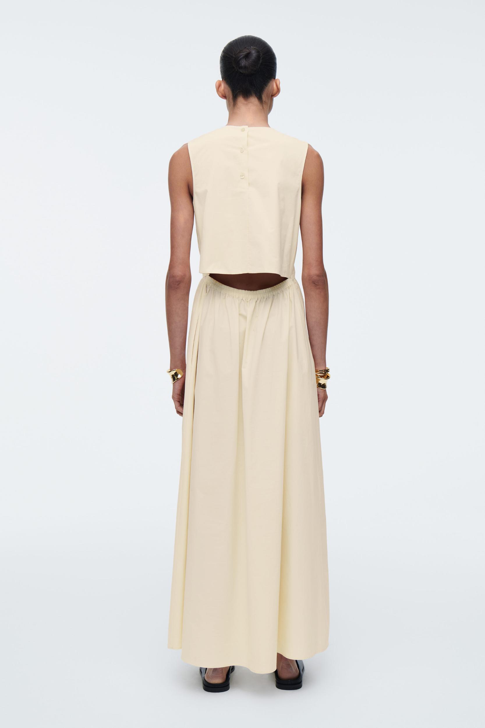 Effortless silhouettes are a tenet of the Spring Summer 2025 collection. Crafted from naturally breathable cotton, this buttermilk-hued dress is cut in a voluminous shape with a nipped-in waist, flared skirt and subtle cut-out detail at the back. Regular fitButton closure Shell and lining: 100% Cotton. Excluding trims / Machine wash Back length of size EU 36 is 140cm / Model wears a size EU 36