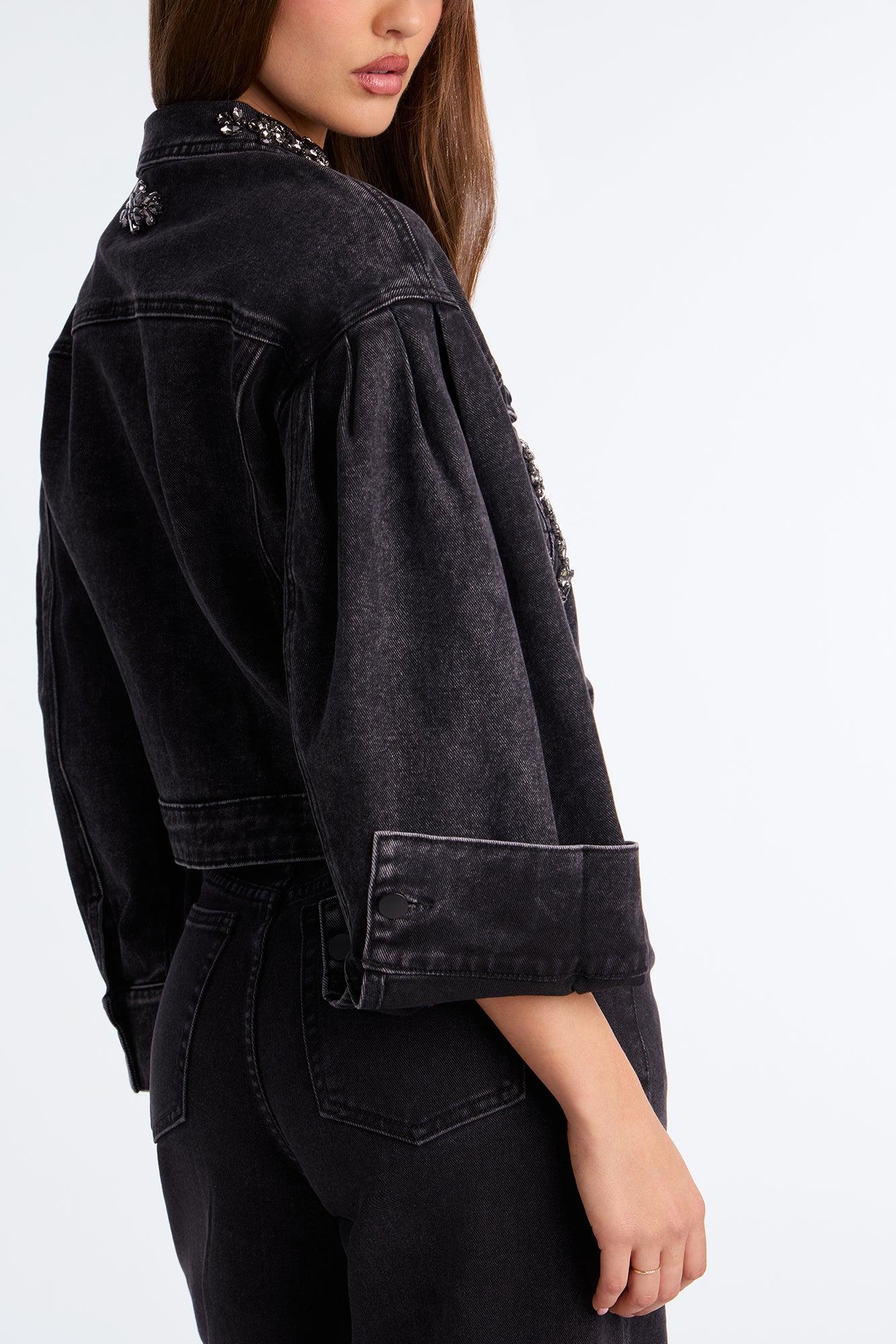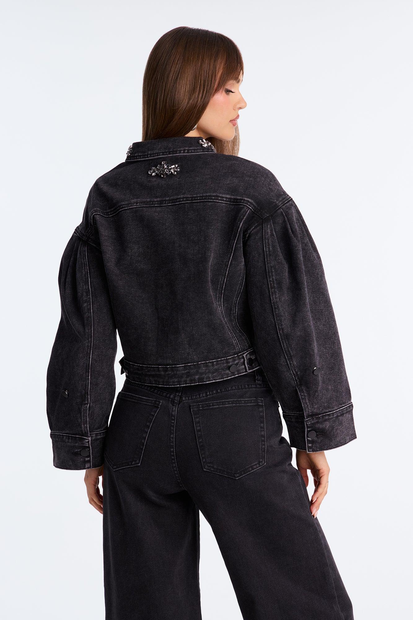 Harlow Jacket - Oversized Long Sleeve Denim Jacket in Black Wash